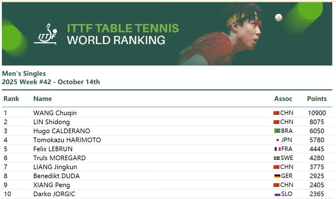 孙颖莎170周霸榜!11600分全是冠军,创历史成首位积分破万女王 孙颖莎连续170周女单第一,10月14日,国际乒联更新2025年第42周世界排名,莎莎是11600分。曼玉第二,陈幸同第三。 大头10900分排第一。小石头第二,雨果第三。 莎莎第一含金量非常高。8个有效积分都来自冠军。他是首位积分破万的运动员。 自从2022年首次登顶登顶。横跨东京,巴黎,洛杉矶三个奥运周期。刷新记录,也是第一个实现全冠军积分的球员。 嗯这也是他。极致拼搏的诠释。加油吧,莎莎