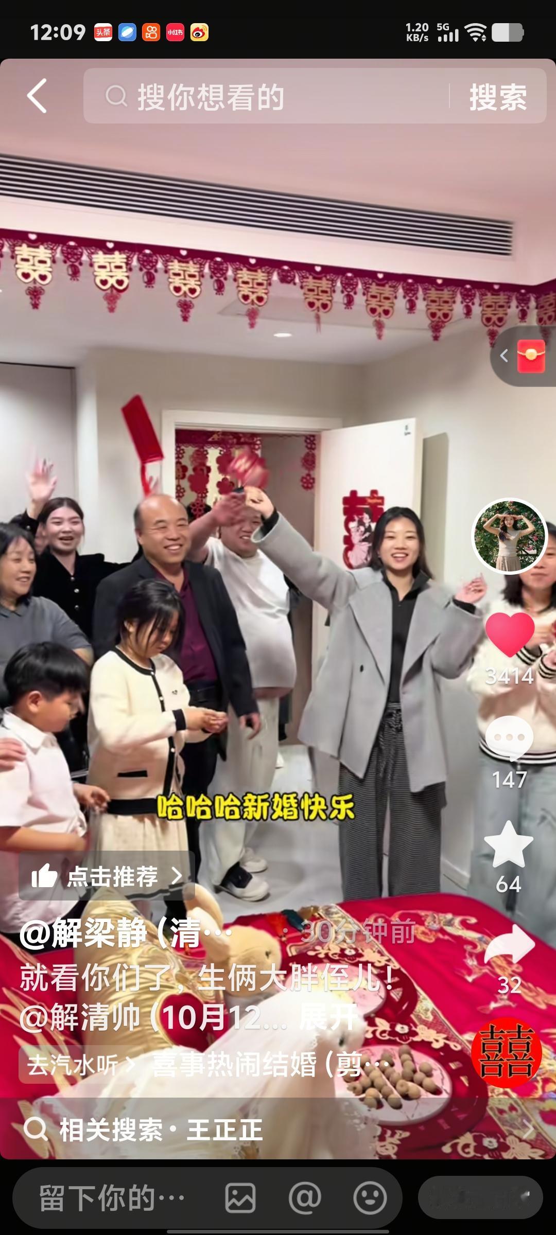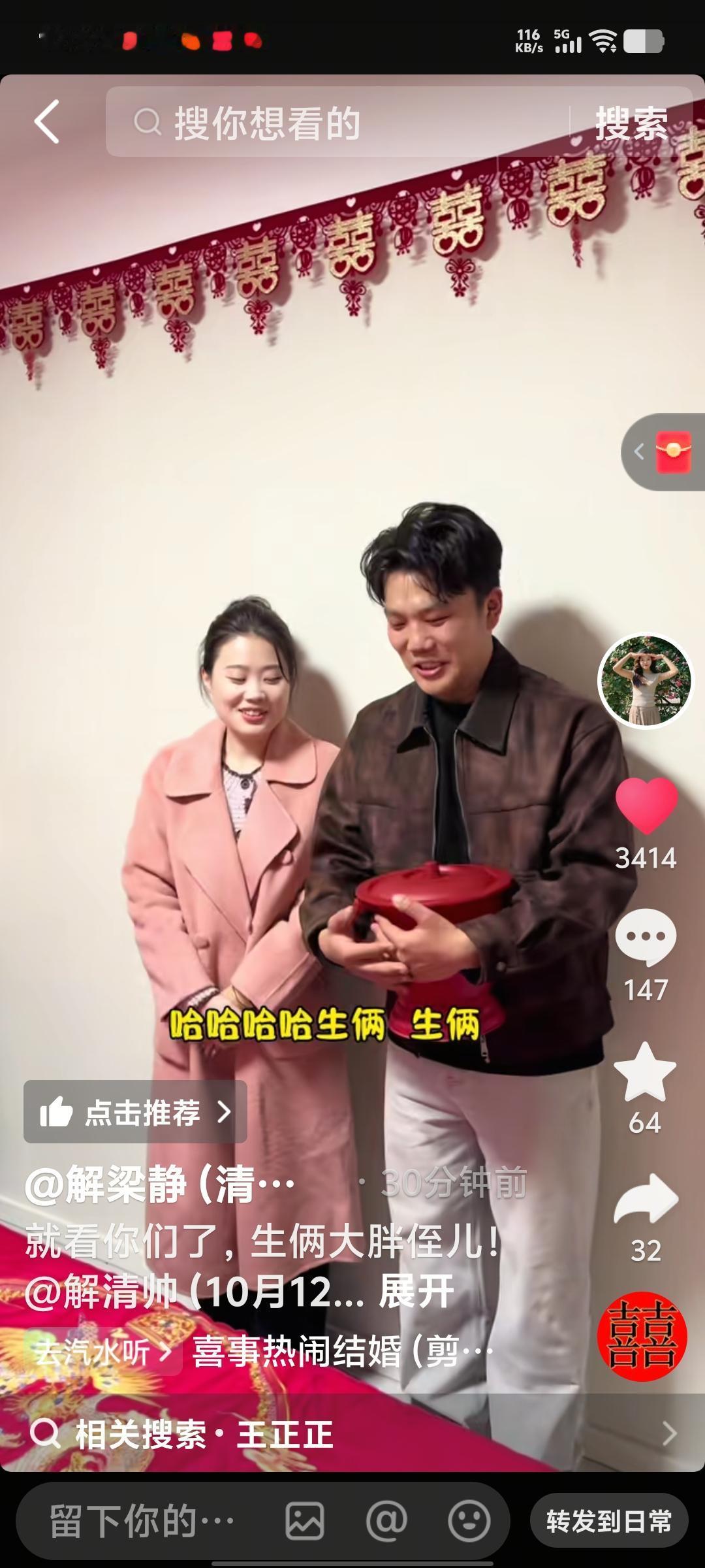 邢台婚俗太逗了!解清帅婚礼被起哄“生大胖小子”,亲友笑作一团 解梁静解梁雯,大声喊,我给嫂嫂端尿盆儿,来年生个大胖子儿。正正听了乐呵呵的送上红包。 接着正正和帅帅接过红彤彤的大尿壶。帅帅说来年一定生俩。大哥,大嫂和亲人们都笑的前仰后合。 邢台的这个风俗真的太搞笑了。梁静当伴娘打扮的漂漂亮亮。婚礼结束,帅帅和正正赶紧一边喂吃的,一边喂喝的。 他说这是自己最后一次当伴娘。网友猜是不是好事将近?都知道梁静有男朋友。 在照相时,梁静身边站着一个很帅气的男子。好像是她男朋友,看着还挺般配的。 这次婚礼举办的非常热闹,也冲上了热搜。办的风风光光。也成了寻子家庭一次聚会。 相信小两口以后的日子一定红红火火。