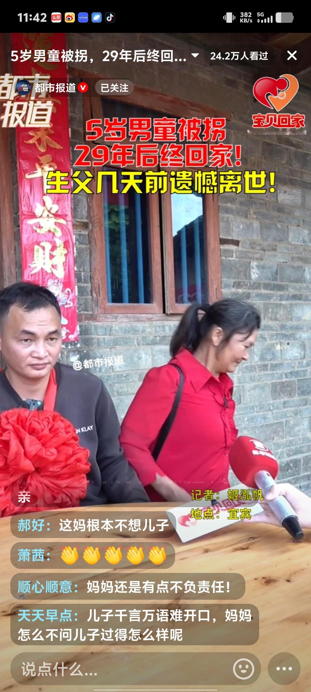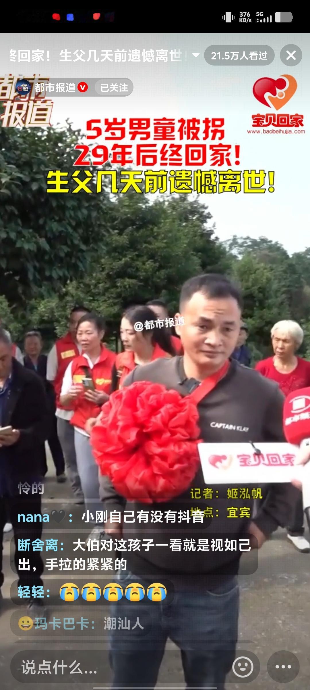被拐29年男童寻亲成功!父亲刚离世,母亲红衣相迎泪洒青砖老屋 5岁男童被拐。29年后找到家。亲生父亲在几天前已离开人世。马杨林嚎啕大哭。 到了买家他就知道自己是被拐卖的,他恨买家,让他离开自己的亲生父母。 成年以后,马杨林就离开了家,一直在寻找亲生父母。从宝贝回家那里得到好消息。 1996年达成,马杨林爸爸带他去广东的时候,把孩子丢了。父母受不了打击,离婚了。 29年过去了。他终于回到了家,遗憾的是在前几天,他父亲已经带着遗憾离开人世, 幸好妈妈还在。今天解释的没有真情的日子,妈妈穿着大红的衣服,手拉着儿子。 高兴的又哭又笑。家里还是过去的青砖老房子。堂哥和大哥早早等在村口,为弟弟带上大红花。 马杨林决定认完亲以后,找一份稳定的工作,好好好好孝顺母亲。 马杨林说小时候被养父用铁链锁起来,怕跑了。也希望大家不要网暴养父母,养父已经过世了。 他说在养父母家生活的并不好。那是自己心里永远的一道伤疤。但不让家里人担心,那些苦都已经过去了。 希望他们此后余生能够幸福。