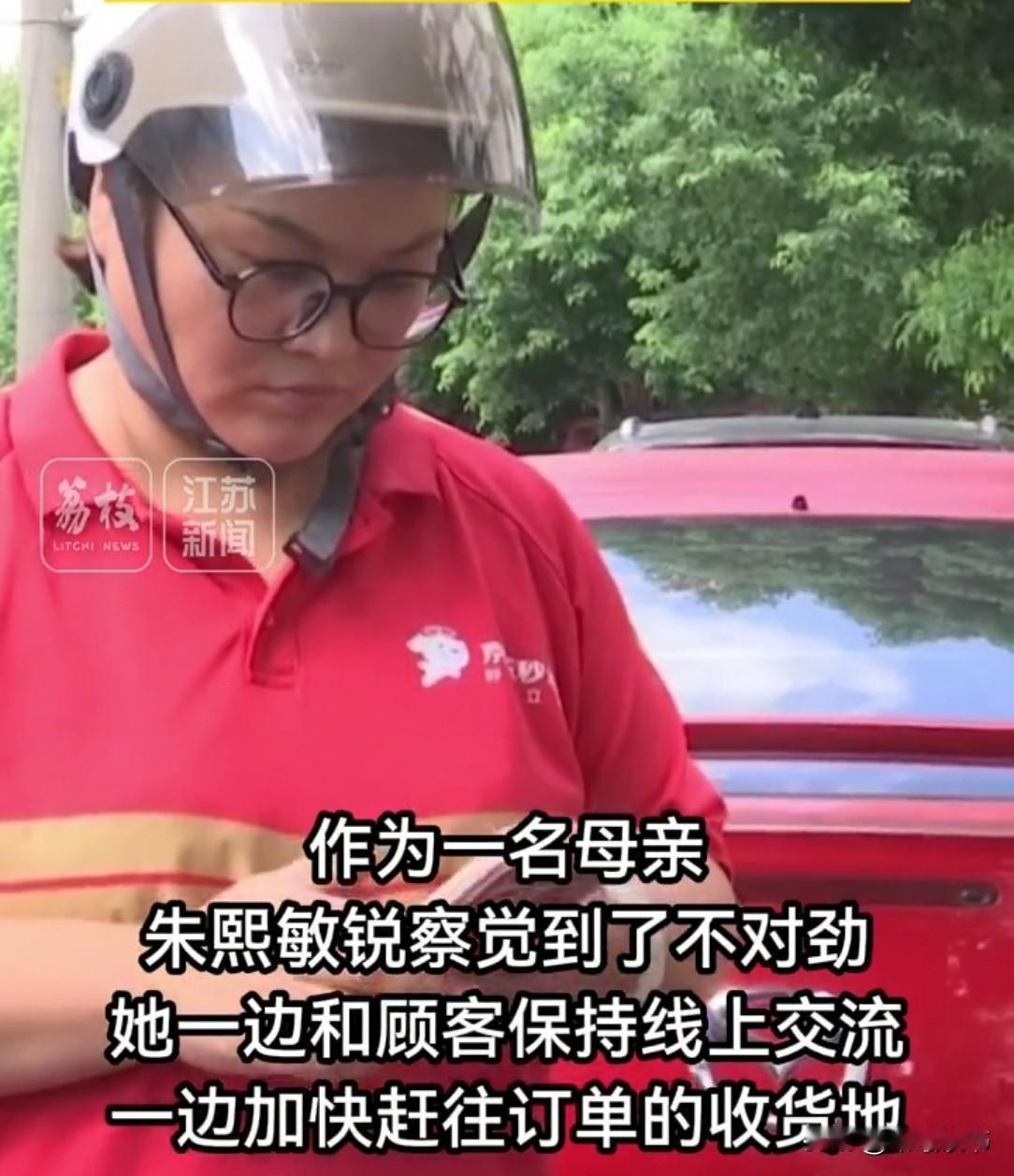 凌晨,常州一骑手赶去运河边送奶茶。途中,顾客发来消息:“不用送了,奶茶请你。” 一听这话,骑手的心“咯噔”沉了下去。 10月1日凌晨4点,江苏常州运河边,一女子坐在那里,不知道想些什么。 突然,她拿起来手机,打开消息界面,发送了一条消息,“到了直接点送达,不用送了,奶茶请你喝。” 此时,40岁的女骑手朱熙正骑着电瓶车赶往运河,给顾客送奶茶。 “叮咚”一声响起,顾客发来了消息,朱熙还以为顾客是在催她,正要回她快到了。 谁知,打开手机一看,才发现不是这么回事,顾客竟说,“到了直接点送达,奶茶请你喝。” 常年送单的敏锐直觉让她瞬间感觉到不对劲——哪有人特意点了奶茶却又不要,还让骑手直接确认送达?除非…… 再一想,送单地址还是在运河边上? 朱熙立马意识到情况不妙,她手指飞快地回消息,想要拖住对方,“妹妹,你能发张附近的照片吗,这附近岔路多,我怕找错地方。” 回了消息后,她拼命加速往订单地址赶。 庆幸的是,顾客愿意回她消息,很快发来一张运河岸边的照片,朱熙一眼认出,这是她常过的那座桥下。 很快,朱熙开着车到了那座桥上。 她猛地捏紧刹车停在路边,飞速往桥下跑。 昏暗的路灯下,只见一年轻女子蹲在河边,双脚几乎要沾到水。 “妹妹,咱有啥事儿不能好好说啊!” 朱熙快步上前,一把将女子从河边抱开。 女子的情绪有点崩溃,身体在发抖。 朱熙她连忙拍着对方后背安抚,另一只手悄悄拨通了110。 随后,朱熙就陪着女子坐在台阶上,轻声听她诉说生活里的委屈。 不久后,民警赶到了。 随后,女子在民警与朱熙的安抚一下,终于稳定了情绪,放弃了轻生的念头。 最后,女子被民警安全送回了家。 骑手朱熙这心眼太亮了!运河边的奶茶单,顾客说“白送你”,她没贪便宜反而急着救人。一点警觉救了条命,这暖心事比奶茶还甜! 为朱熙点一个大大的赞!
