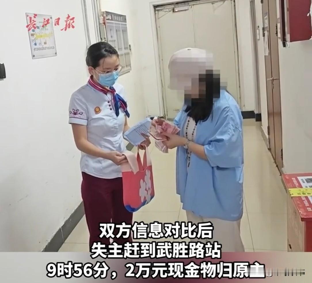 武汉一地铁车厢里,一女子下车时,见一手提袋一直在车上,便带走交给工作人员了。工作人员打开一看,袋里竟有2万元现金。 10月4日上午9点刚过,武汉地铁6号线列车缓缓驶入武胜路站,车门“嘀嘀”响着即将关闭。 穿黑色小外套女子起身准备下车,眼角余光瞥见右侧座位上,一个深棕色手提袋静静躺着——刚才这座位明明坐了人,下车时竟没人带走。 “这是谁落下的呀?”女子皱着眉嘀咕,伸手碰了碰袋子,质感厚实,沉甸甸的。 她探头往车厢里扫了圈,乘客都在收拾东西准备下车,没人回头找东西。“肯定是刚才那穿蓝色外套的姑娘忘的,走得太急了!” 她心里想着,怕袋子被人误拿,赶紧拎起袋子,快步走出车厢。 出了闸机,女子径直往车站客服中心跑。 “您好,我刚在6号线往金银湖方向的中间车厢,捡了这个手提袋,8点50分左右看到穿蓝色外套的姑娘坐过那儿,她下车太急落下的。” 她把袋子放在柜台上,喘着气补充,“您记一下特征,方便找失主,我还有事就先撤了。” 工作人员连忙接过袋子,笑着道谢:“太感谢您了,麻烦您特意跑一趟!”女子摆了摆手,脚步匆匆地离开了客服中心。 等她走后,工作人员掏出登记表,刚拉开手提袋拉链,满满两沓红色现金突然露了出来,崭新的钞票泛着光泽。 她眼睛一下子睁大,赶紧数了数——足足2万元! “这么多现金,失主肯定急坏了!” 她立刻拿起电话,先联系列车调度室调取8点50分前后琴台站的下车监控,又拨通琴台站同事的电话:“有没有穿蓝色外套的乘客来寻深棕色手提袋?里面有2万元现金!” 电话那头很快传来回应:“有!一姑娘正蹲在找呢,说装着2万块的袋子丢了,穿蓝色外套,戴米灰色帽子!” 两人赶紧核对细节,确认那位姑娘就是失主,便让她立刻来武胜路站认领。 10分钟后,穿蓝色外套的姑娘气喘吁吁冲进客服中心,看到柜台上的手提袋,眼泪瞬间涌了出来:“就是这个!我的钱!” 她颤抖着打开袋子,摸着整齐的现金,转头紧紧握着李姐的手:“太谢谢你们了!还有那位捡袋子的女士,要不是她心善、你们帮忙找,这学费可就没着落了!” 值班的工作人员笑着递过纸巾:“您别客气,是那位女士心细,我们只是做了该做的。” 蓝衣姑娘反复念叨着要感谢那位女子,直到对方说以后见到会代为转达,她才安心拿着袋子离开,走前还不停回头朝客服中心挥手道谢。 这事儿多暖!女子顺手捡袋还袋,地铁人尽心找人,妥妥的“良言一句三冬暖,善行一件胜千金”。 哪有啥惊天动地,不过是普通人守着良心办事。 为热心的女子和尽职的工作人员点赞!