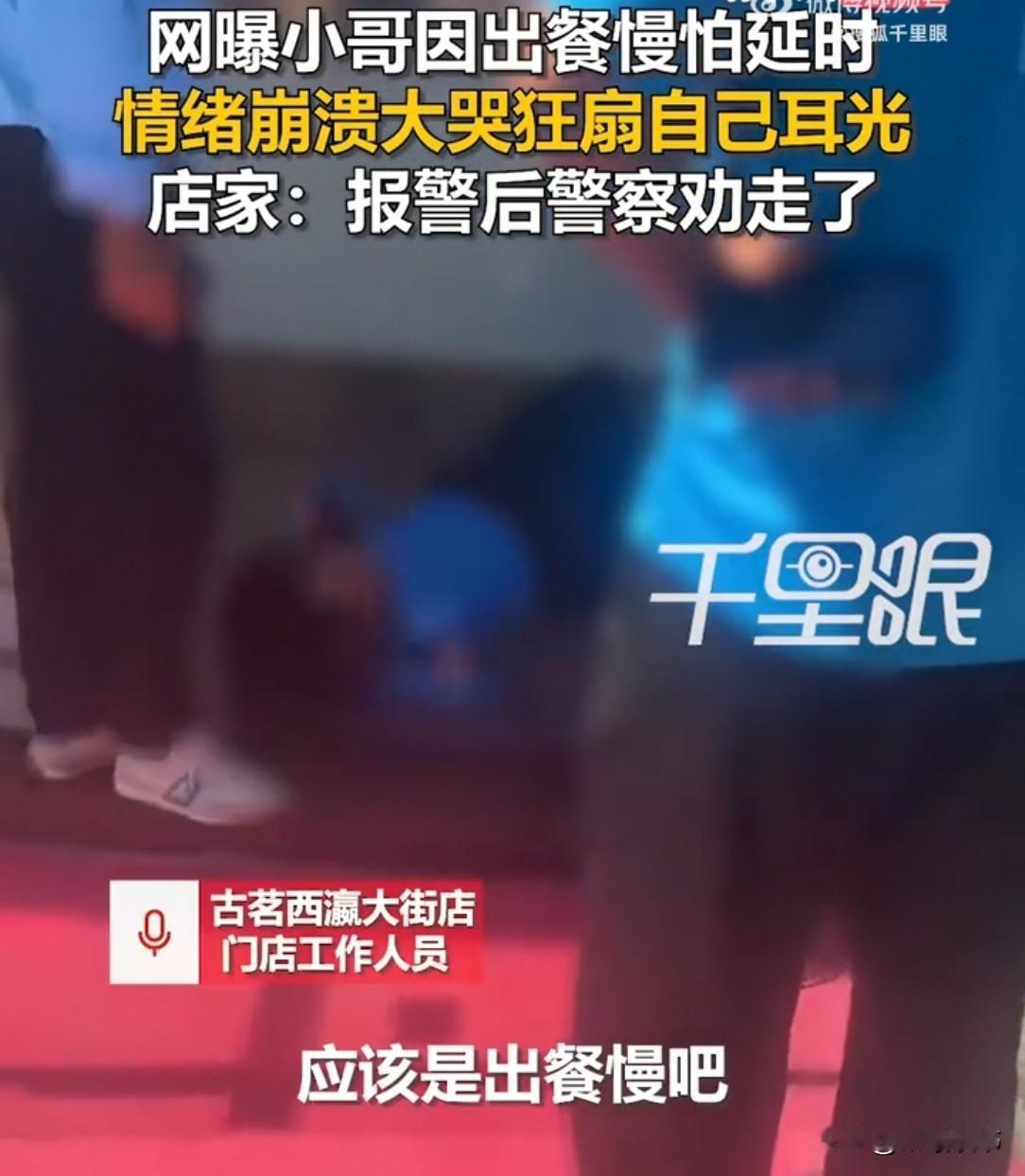 浙江宁波一奶茶店,店员手忙脚乱。外卖小哥急问:“还没好?”店员回:“单子堆着,再等等!”话音刚落,小哥“咚”地倒地,捂着脸大哭,巴掌狠狠往自己脸上扇。 9月28日上午,宁波一奶茶店忙得热火朝天,店里的叫号声、冰块碰撞声混在一起。 “砰!”一外卖小哥小林猛地推开玻璃门,蓝色头盔上还沾着点尘土,他抬手抹了把额角的汗,声音发紧:“我来拿32号单!” 柜台后,店员小陈正埋着头摇奶茶,左手边的出餐台上堆着七八杯做好的饮品,右手边的订单小票像雪花似的飘了半桌。 他头也没抬,手腕飞快转动着,“你自己看看柜台上的单号,没有就是还在做。” 外卖小哥攥着手机快步走过去,指尖在杯身上的单号上飞快划过,眼睛瞪得发涩,“没有……都不是。” 他退回门口,脚边的外卖箱“咔嗒”响了一声,手机屏幕亮起来,订单倒计时跳着数字:18分钟、17分钟……他咬着下唇,来回踱了两步,鞋子蹭得地面“沙沙”响。 3分钟过去,小陈终于喊了声“有3单好了,快来拿。” 外卖小哥小林几乎是扑过去的,手指捏着杯身看了又看,最后颓颓地垂下手,眉头拧成个疙瘩:“怎么还没有我的单子?” 小陈刚把新的奶茶封好盖,闻言直起腰,语气也添了几分不耐烦:“你没看见单子堆到顶了?后面还有二十多单呢,再等等!” 这话像根火柴,瞬间点燃了外卖小哥心里积压的火药。 “咚”的一声闷响,他直挺挺地跪在了瓷砖地上,膝盖撞得地面发颤。 周围取餐的顾客都吓了一跳,纷纷停下动作看过来。 外卖小哥双手死死捂住脸,指缝里先是溢出压抑的呜咽,接着变成撕心裂肺的大哭,肩膀一抽一抽的,像被雨打蔫的草。 “都怪你!为什么不快点!” 他突然抬起头,眼睛红得像充血的兔子,没等旁人反应,左手猛地甩在自己脸上,“啪”的一声脆响,脸上瞬间红了一片。 接着又是一巴掌,力道比刚才还重,眼泪混着鼻涕往下淌,“让你催!让你急!这单超时了要扣五十块!你怎么这么没用啊!” 小陈手里的奶茶差点摔在地上,他僵在原地,脸上满是错愕,“你、你别这样……” 他想上前拉人,又怕刺激到外卖员,手伸到半空又缩了回去,慌忙摸出手机拨了报警电话,声音都在抖:“喂,警察同志吗?我们店有人崩溃了,还自己打自己……” 没几分钟,民警老周就赶到了。 他刚蹲在外卖小哥身边,还没来得及开口,柜台后突然传来小陈的声音:“快快快,32号订单好了!” 外卖小哥小林猛地顿住哭声,通红的眼睛直勾勾盯着柜台处的奶茶,手指微微蜷缩,却没力气起身——刚才的崩溃耗尽了他所有劲。 这时,站在出餐台旁取单的黄衣外卖小哥张强拎着自己的两杯奶茶,瞥见了那杯孤零零的32号,又看了眼地上还在抽噎的外卖小哥小林,突然问小陈:“这杯是刚才哭的兄弟的吧?” 小陈点点头,张强当即拿起那杯奶茶,走到小林身边,拍了拍他的肩膀:“兄弟,我刚看了眼地址,你这单跟我要送的小区就隔条街,我顺道帮你带过去,你歇会儿。” 外卖小哥小林抬头,眼泪还挂在下巴上,声音沙哑:“真、真的?” “多大点事!”张强笑着晃了晃手里的单子,“我这单时间充裕,正好顺路,你安心缓一缓。” 老周见状,顺势拍了拍林凯的后背,声音放柔:“你看,都是同行,互相帮衬一把就过去了。超时扣钱事小,别跟自己身体过不去。” 外卖员小林接过张强递来的订单小票,指尖捏得发皱,哽咽着说了声“谢谢”。 外卖小哥这一跪,跪的是生活难。但好在有人递奶茶、帮送单,真是“众人拾柴火焰高”。 日子再急,有人搭把手就暖了,别跟自己较劲,啥坎儿都能过。