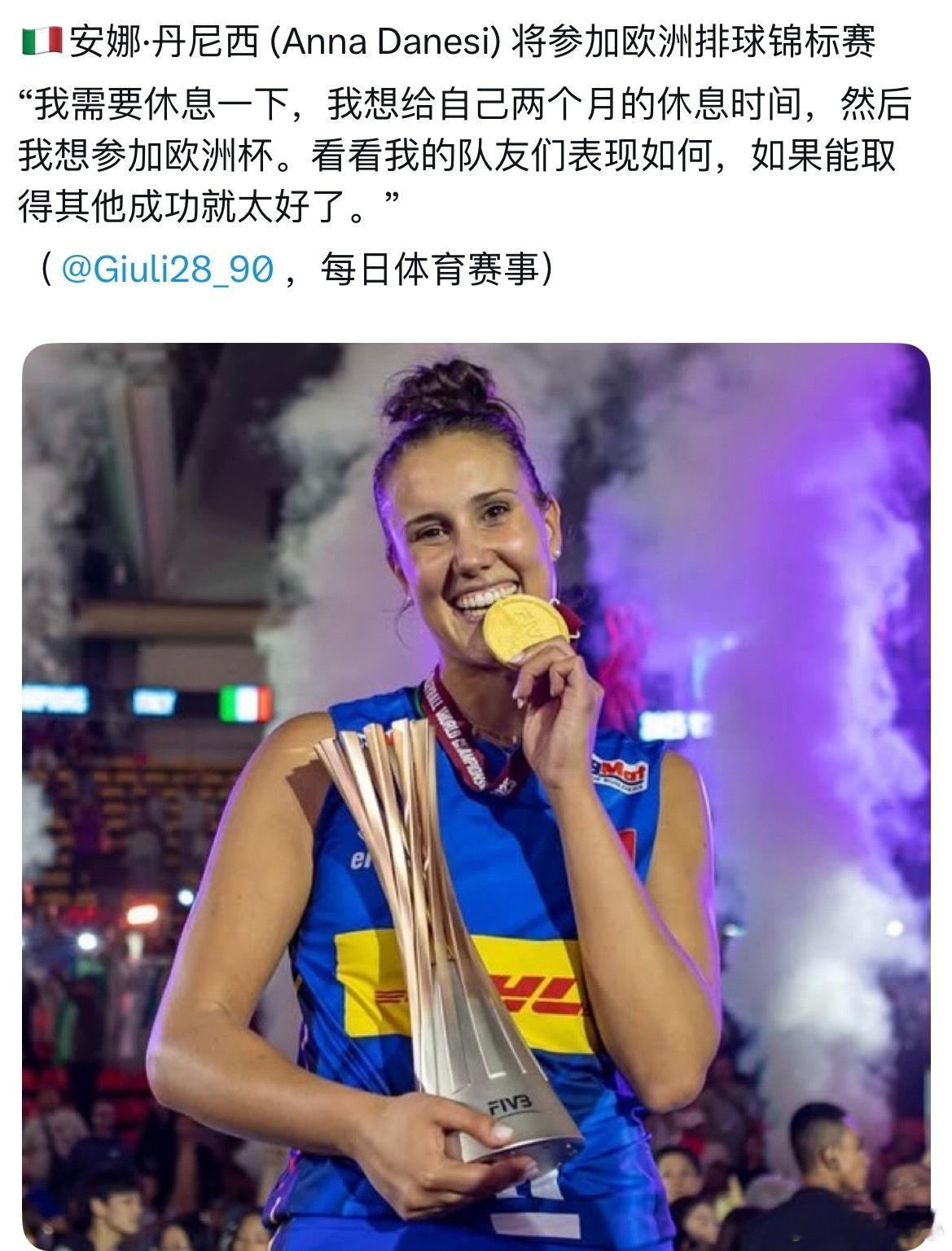 世界女排新闻 达内西说到,明年将会休息两个月(明年VNL将是新人的大展宏图机会),然后参加欧锦赛