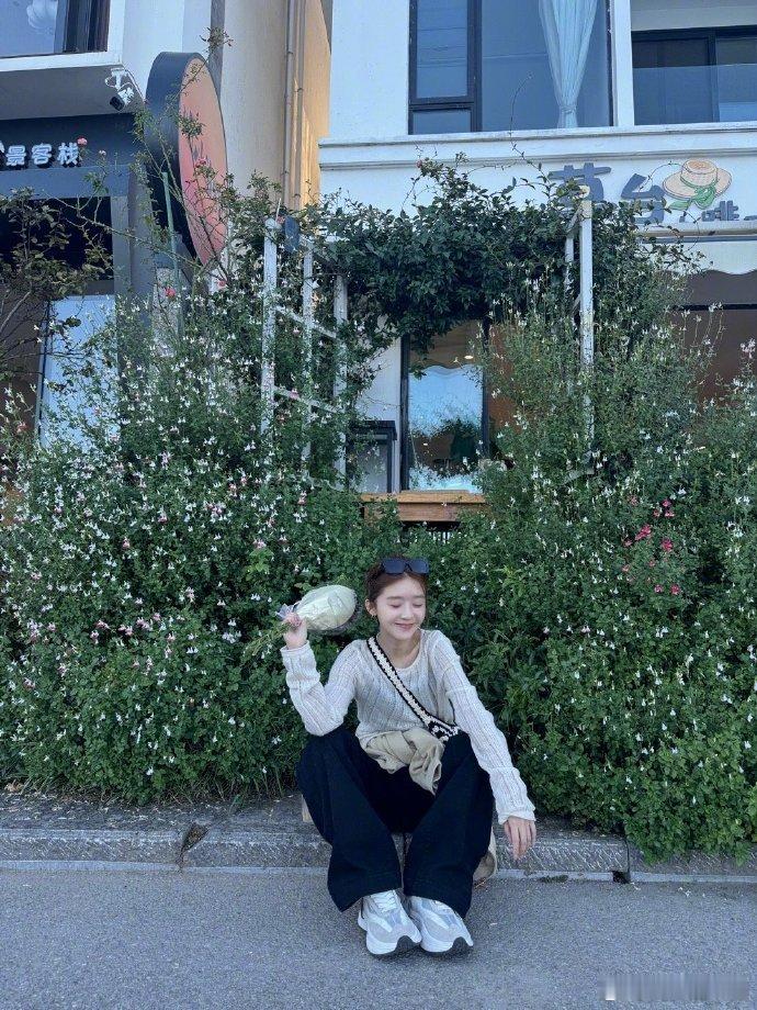 宋伊人出发去看海宋伊人看海啦,好有活力💖远处的海是渐变蓝,近处的她笑眼弯弯,人