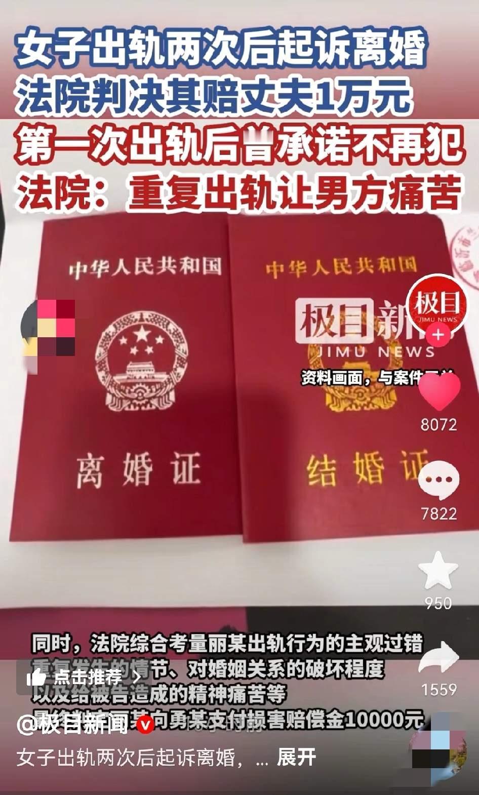 湖北利川发生一起离婚纠纷,涉事女子在与丈夫的婚姻关系存续期间,先后两次与他人发生