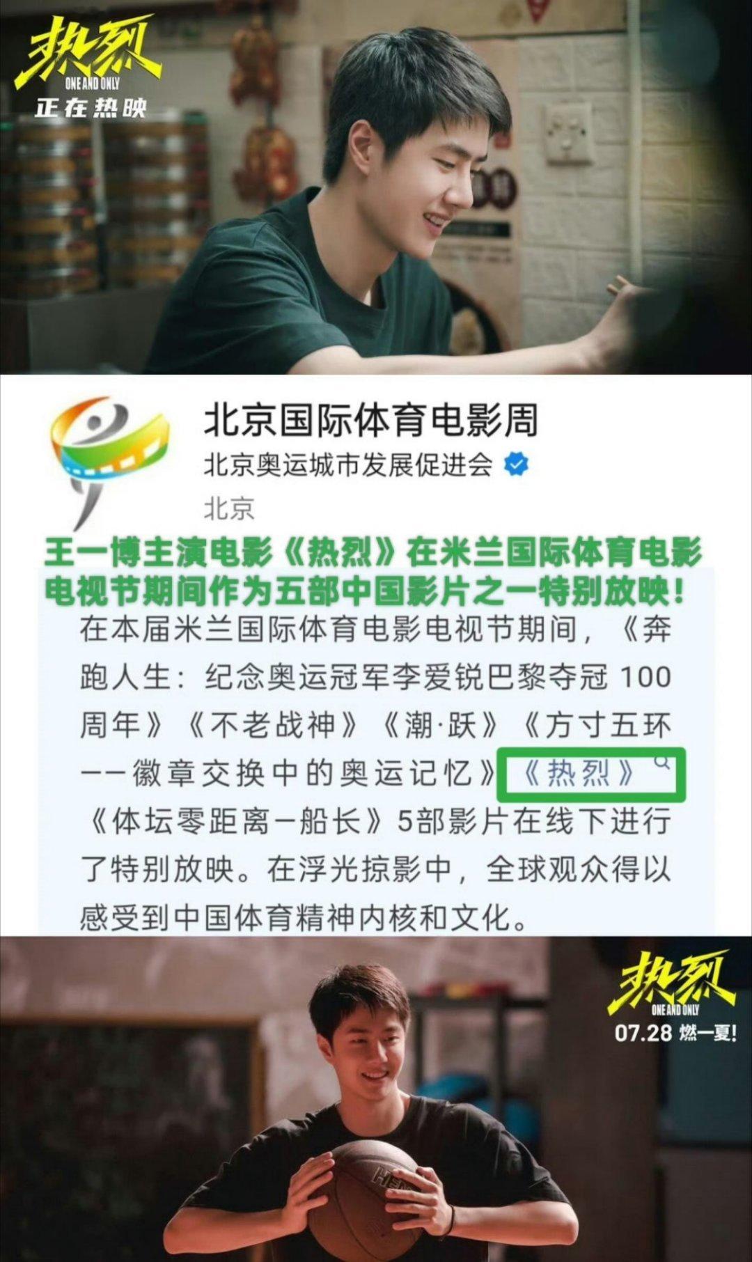 米兰国际体育电影周精选《热烈》作为中国代表片单,全球观众通过王一博的演绎感受中国体育魂!从《无名》到《热烈》到《长空之王》,他已成为新时代中国形象的青春注脚🇨🇳🌍