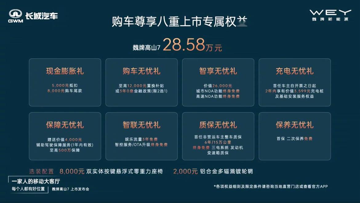魏建军称服务用户没有完成时产能服务双提速,魏牌不会让你等太久!今晚高山7上市,售价28.58万,高山家族又迎来超能打的新成员。现如今,越来越多的年轻家庭对MPV“真香”,高山仅用短短五个月的时间就成为细分市场销量第一,口碑销量双丰收,率先开启MPV家庭时代。魏建军在用户服务方面表示“没有完成时,只有进行时”。销量爆发的背后,是魏牌新能源对家庭用户出行痛点的深刻洞察,既要空间大,又要灵活好开,既要考虑到安全健康,也不能忽视智能娱乐,服务全家的车型要让全家满意有多难,高山做到了。高山7作为30万以内MPV产品实力天花板,做到了短车长与大空间兼得,开启灵动转向后最小转弯半径仅5.6米颠覆MPV笨重难开的既往认知,好开、好停、好灵活,还标配激光雷达,可实现车位到车位的辅助驾驶。高山7会用实力证明,所有的等待,都是值得的~魏牌高山7正式上市