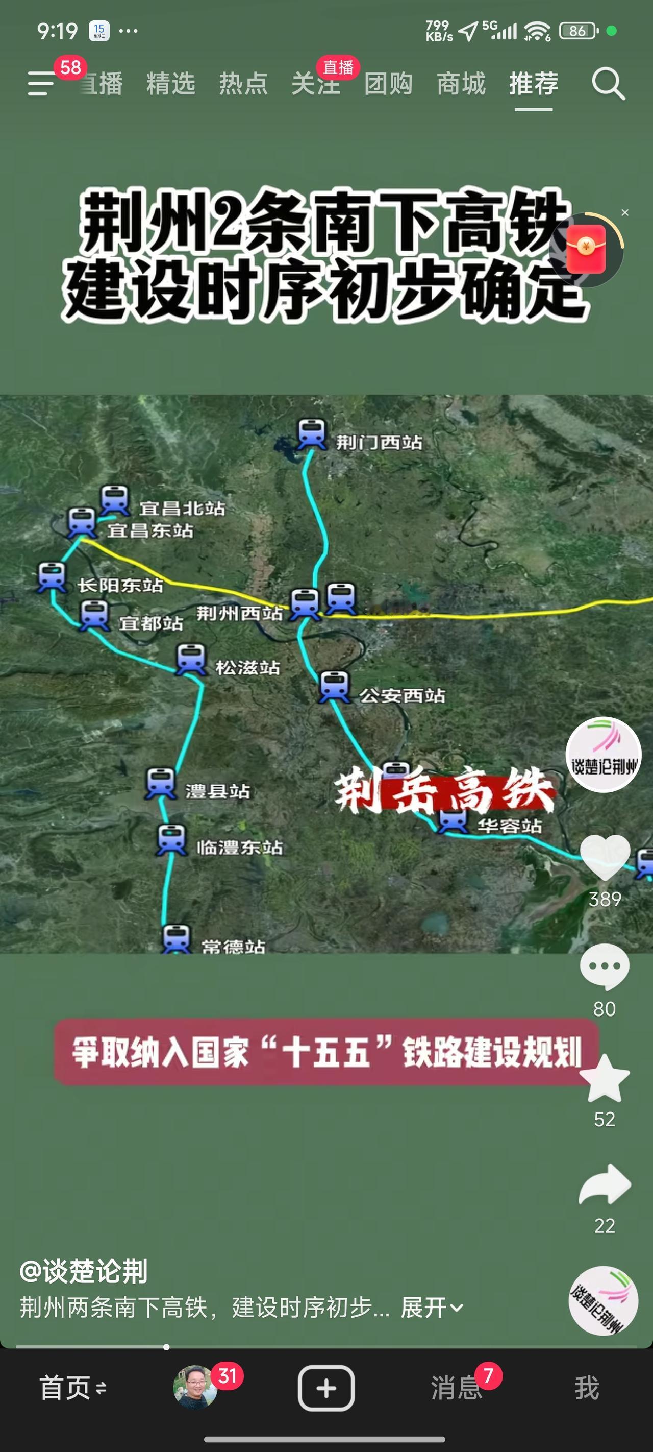 既然荆州到岳阳的线路已经确定,那么荆门到岳阳的线路应是荆门 - 沙洋 - 潜江 - 监利 - 岳阳。此外,洪湖的老乡们也期望有一条武汉 - 仙桃 - 洪湖 - 监利 - 岳阳的线路。别指望 350 时速的线路了,要也很难要到,毕竟这两条线路本就不是干线,250 时速的有砟轨道足矣。 另外,监利华容公铁大桥完全可以先行开工,预留铁路通道。现实中最大的阻碍在于,做大做强武汉的目标与给这些地方通铁路后可能加剧人口流失到广东这一矛盾,这才是项目迟迟未推进的根本原因! 荆州至岳阳高铁 荆门动车 荆门高铁站 仙桃到武汉动车 荆州监利回程车 荆州段 荆州荆门