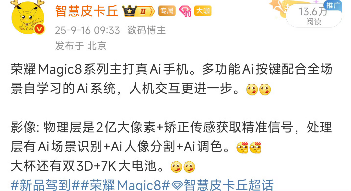 荣耀发布会荣耀Magic8智慧皮卡丘[超话]