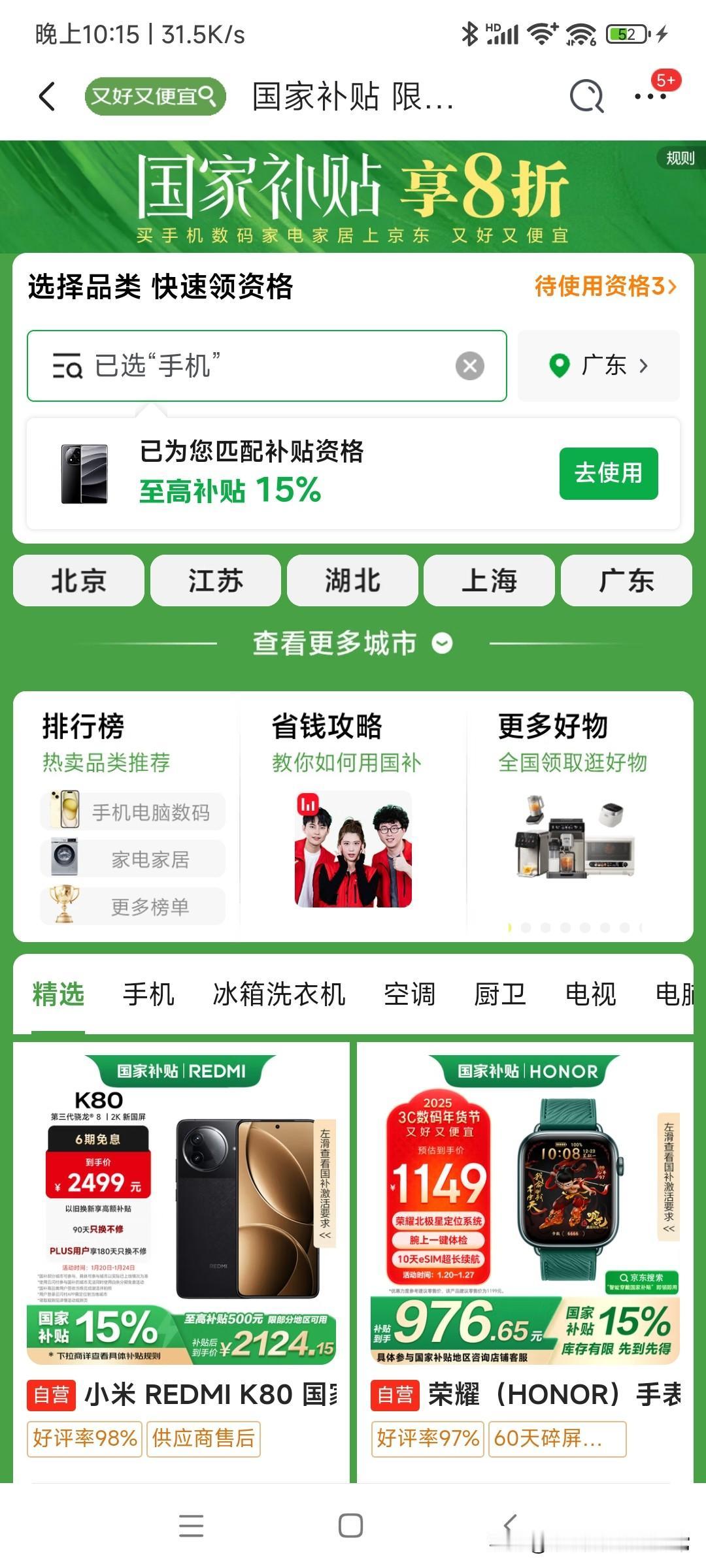 广东人狂喜!双十一国补王炸上线! 双十一刚预热,广东就甩出“国补王炸”!手机、家电直接享补贴,最高能省20%,不用熬夜抢券,领了资格直接用,简直是懒人心头好。 红米K80补贴后两千出头,荣耀手表到手不足千块,家电单品最高补2000元……这羊毛薅得也太爽了! 但有人嘀咕:这补贴是真香,可会不会有套路?你觉得这波国补是真福利还是营销噱头?