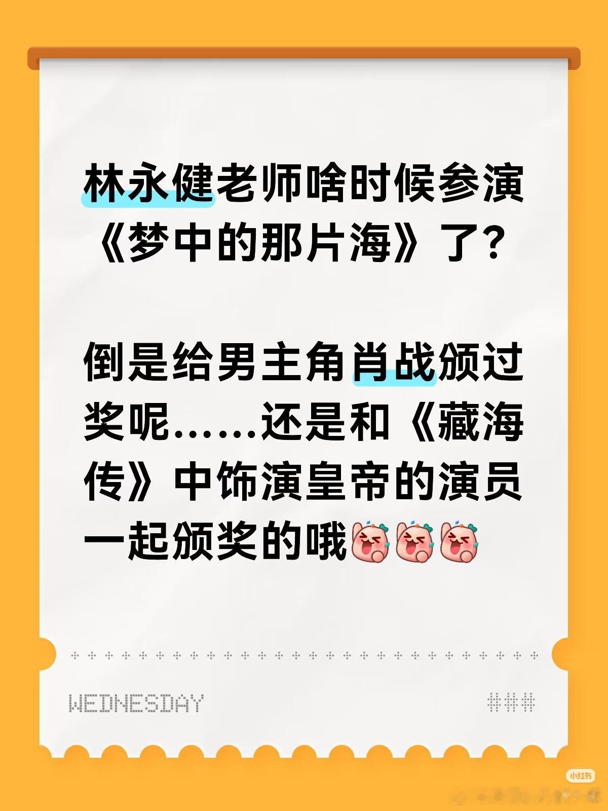 林永健老师和藏海传的皇帝给肖战的梦中的那片海颁的奖,这缩写为林永健和肖战出演了梦中的那片海!