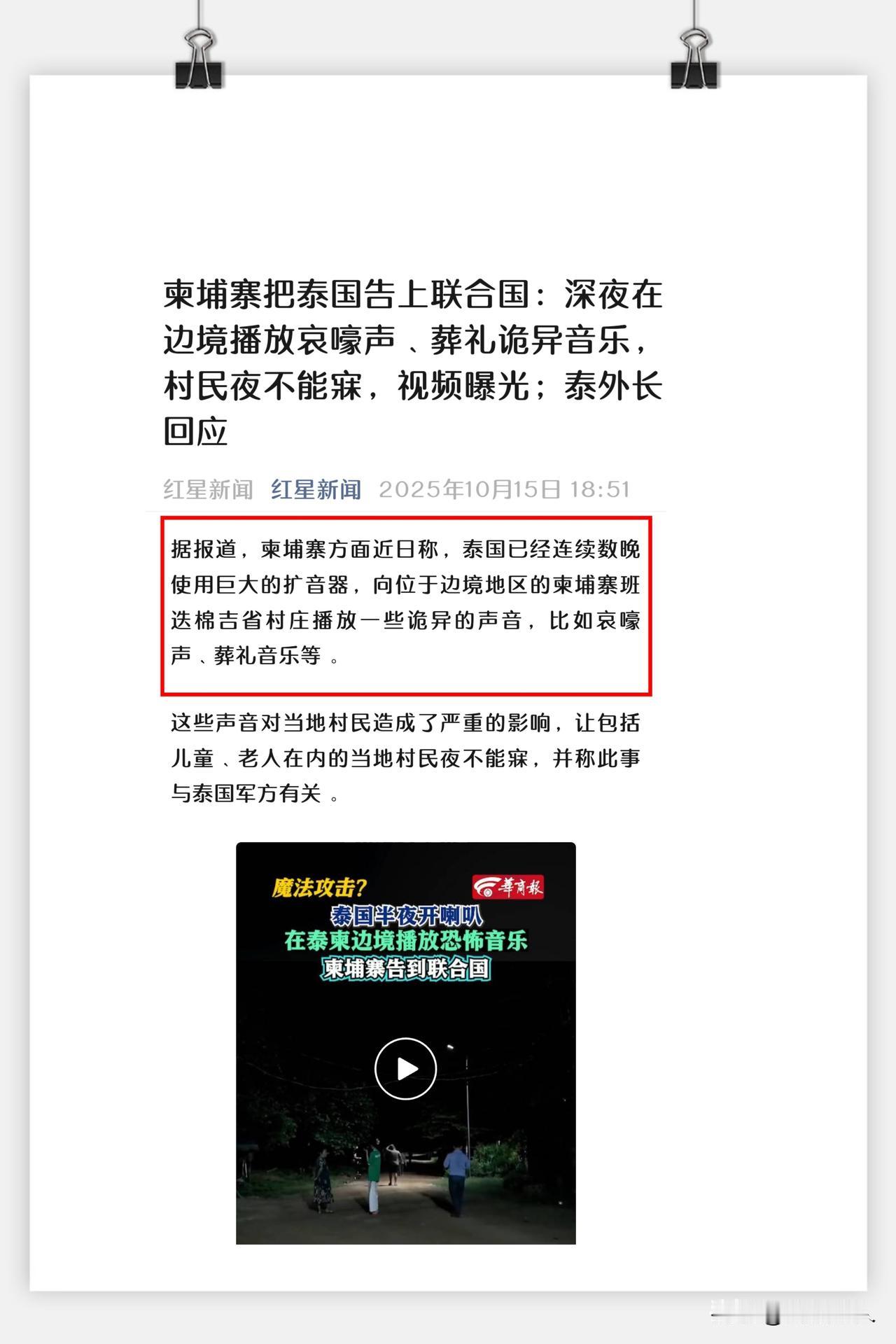 🤭笑不活,泰国真会玩,夜夜拿大喇叭放哀乐诅咒邻居柬埔寨,是要对柬下“降头术”吗? 柬埔寨边境老百姓苦不堪言,忍无可忍却又无可奈何,连续数夜都睡不了觉,都熬成熊猫眼🐼了...,无计可施的柬埔寨不得不向联合国哭诉告状。 观看了相关视频,那声音真的很恐怖很惊悚,一般人听着这种声音,还真的会害怕到失眠。连续数晚,换谁都受不了。 这“萨瓦迪卡”想要干嘛呢?这算什么战术呢?邻居之间,和平共处,合作共赢,有什么问题不能坐下来沟通,和平解决的呢? (消息素材来源:红星新闻)
