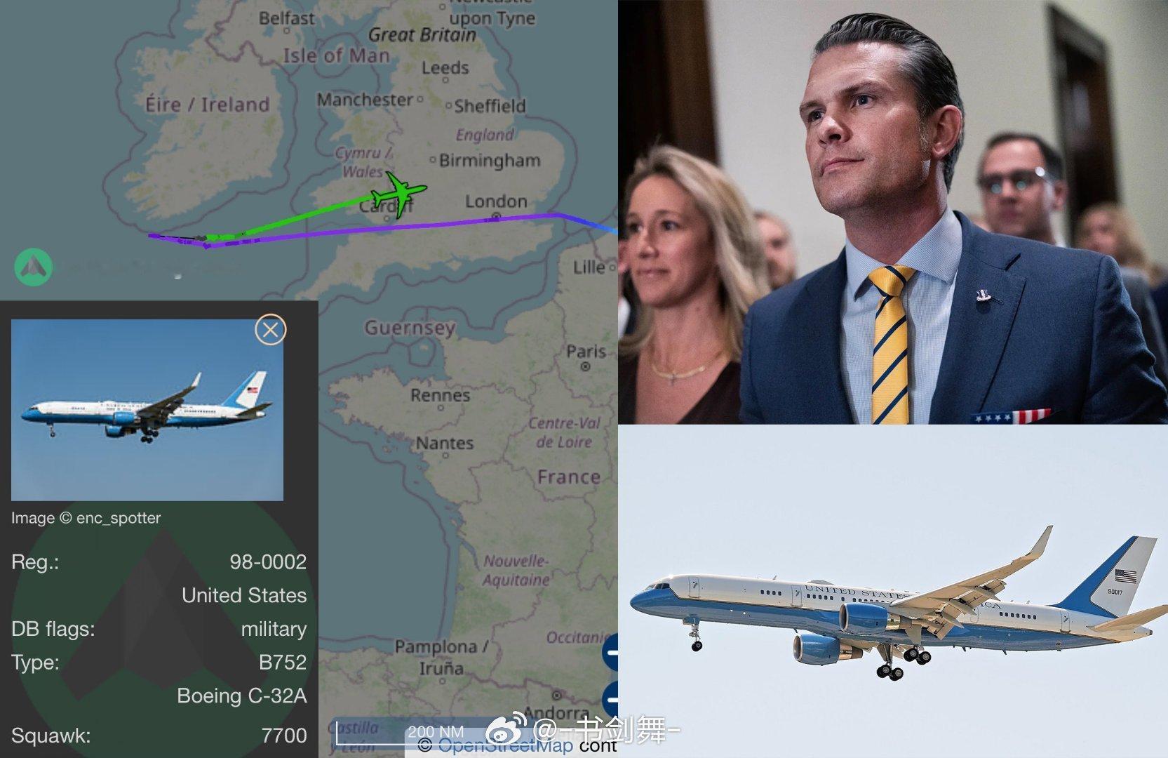 载有国防部长皮特·海格塞思的美国空军C-32专机在大西洋上空宣布紧急情况,已下降至1万英尺并掉头返回英国。
