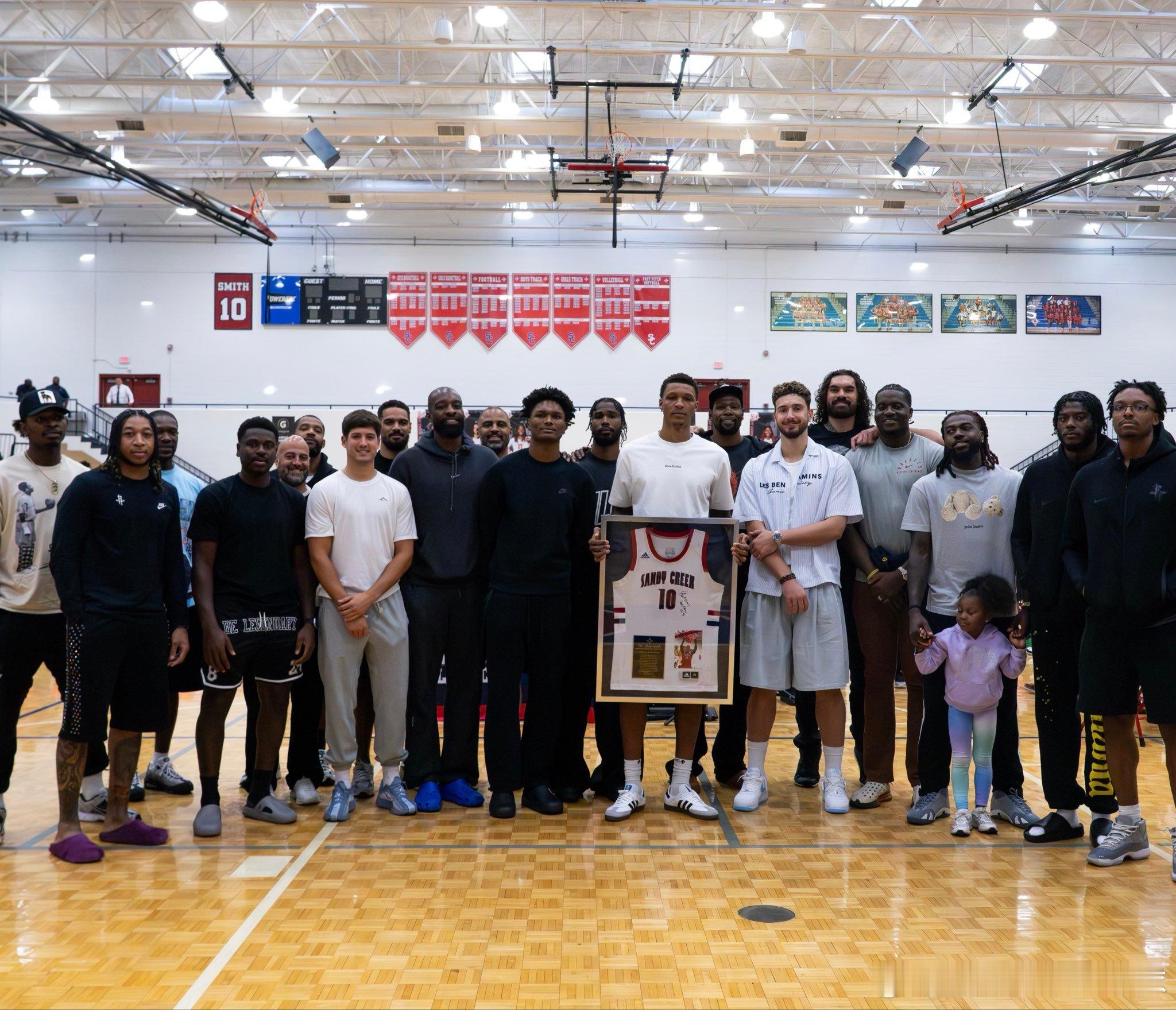 火箭队全队集体到场,共同见证小贾巴里-史密斯 的高中球衣退役仪式 🥹