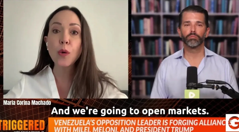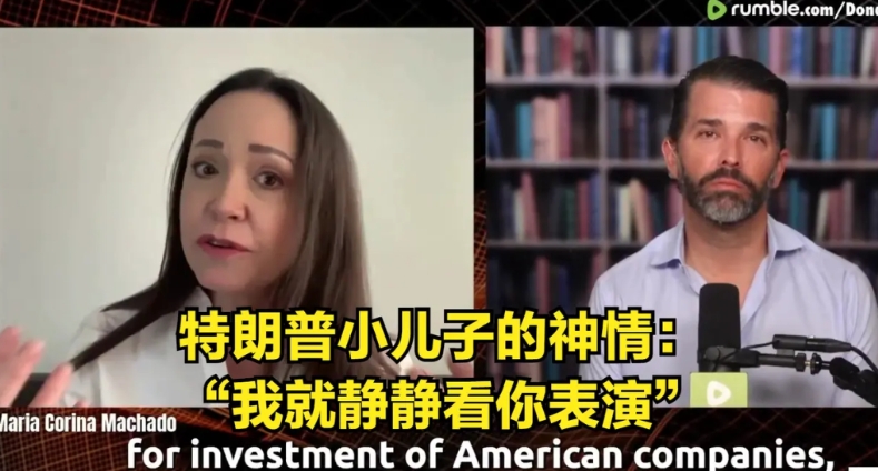 ——诺贝尔和平奖最新获得者、委内瑞拉反对派领袖马查多,在接受特朗普小儿子的采访时兴奋地介绍自己的愿景。