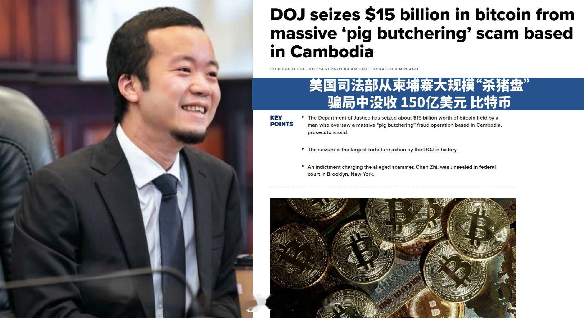 这是美国史上最大规模的加密货币资产没收行动。指控细节:自2015年起,陈志指示集团在柬埔寨运营至少10个“诈骗园区”。受害者被迫实施“杀猪盘”(pig butchering)加密投资诈骗、洗钱等犯罪,受害者遍布全球,损失数十亿美元。
