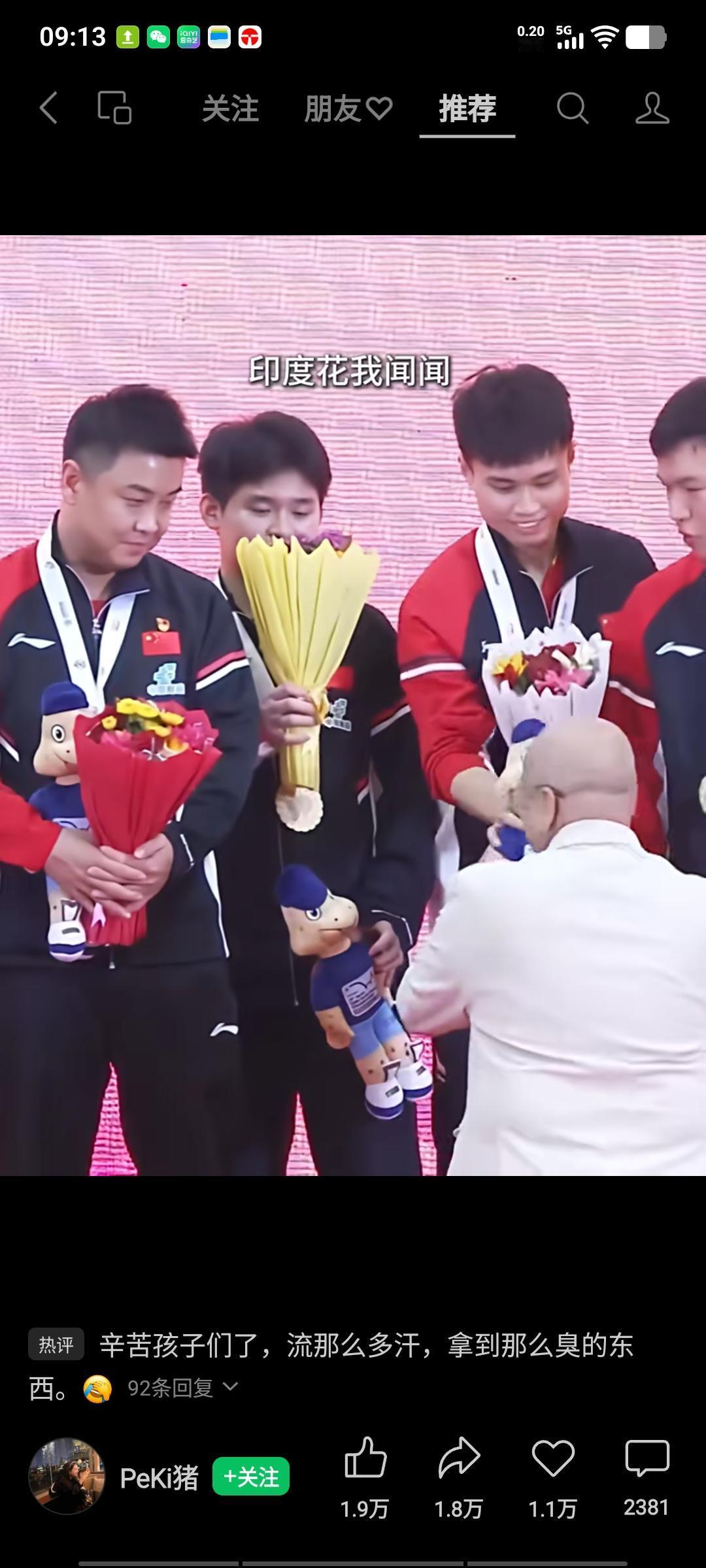 中国男乒斩获亚锦赛团体冠军后,在发奖仪式上,林诗栋接过官员颁发的鲜花,顿觉味道异样,遂低头嗅了嗅,转头对周启豪说道:“这花好臭,不信你闻闻。”周启豪露出一抹狡黠的笑容。林诗栋为证实自己的感受,又低头闻了闻,脸上满是难受,看来这花的味道着实不佳。 此次在印度举办的亚锦赛,环境恶劣、卫生堪忧,还故意挂错旗帜,场地漏水,组织工作一塌糊涂,摄像也极为业余,宛如一个草台班子。各国运动员对此怨声载道。就这水平,还妄图申办奥运会,真让人摸不着头脑。 目睹印度的这般现状,我们更应感恩党,感恩伟大祖国的强盛,感恩我国科技的进步,正是这些让人民拥有了自豪感与安全感。