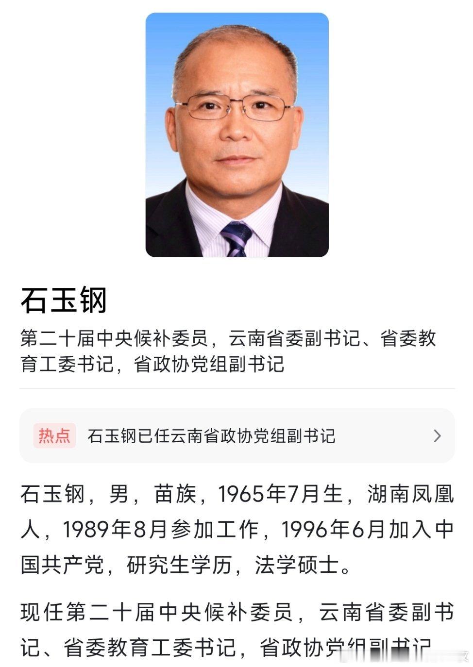 石玉钢已任省政协党组副书记。热点现场