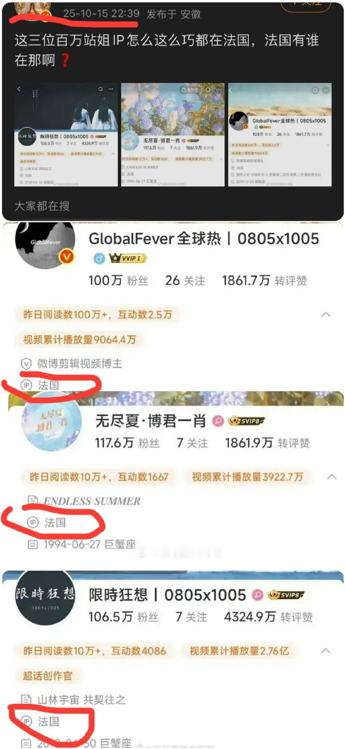 叹为观止,博君一肖三个百万站姐一小时内火速改ip,法国到底有谁在啊