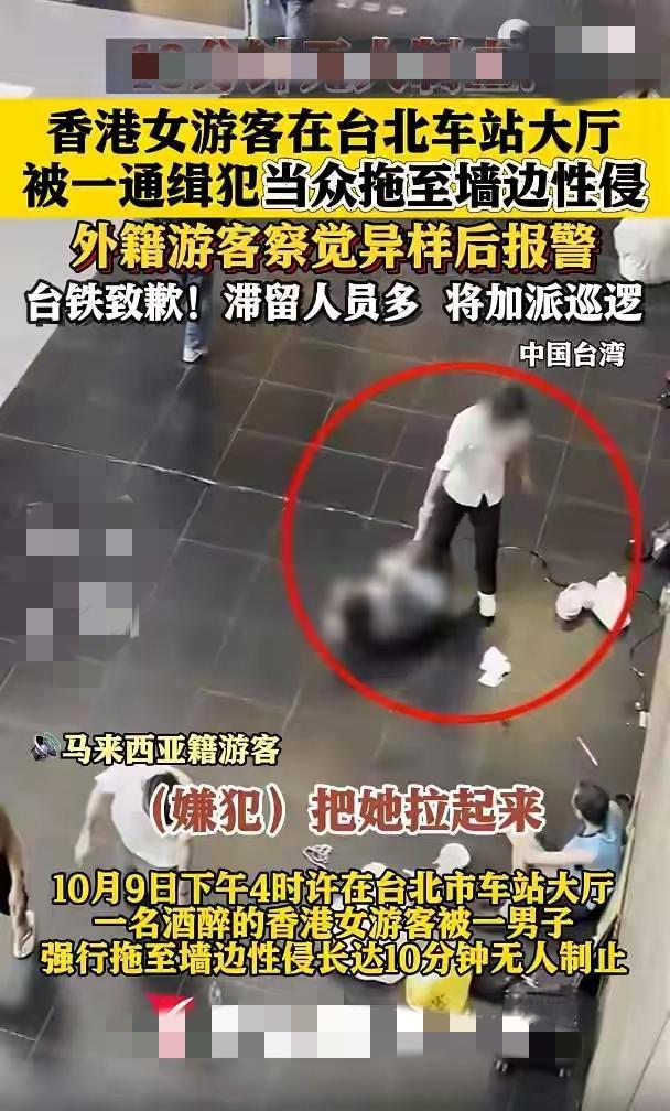 台北车站出了件让人窝火的事!本月9日下午,一名香港女游客醉酒后遭通缉犯性侵,十分钟里围观者一堆,最后还是外籍男子报警才收场,这算哪门子事? 当天下午,女游客醉得脚步打晃,慢慢走进台北车站。她可能都没察觉,身后跟着个不怀好意的通缉犯。那犯人看她软趴趴没力气反抗,直接拽着她胳膊往墙角拖,动作又粗又狠。车站里人来人往,有人提着行李箱匆匆路过,有人靠在柱子上刷手机,肯定不少人瞥见了这一幕。可没人停下脚步,有人假装没看见扭头就走,有人偷偷瞄几眼又低下头,就这么看着恶行持续了十分钟。 后来才知道,最后是位外籍男子看不过去。他没直接冲上去,先悄悄拿出手机录下证据,接着赶紧拨了报警电话。十分钟后警察赶到,当场把那通缉犯扣住带走。这事传开后,不少人讨论为啥没人帮忙。有网友说,可能是怕惹麻烦,觉得“多一事不如少一事”;也有人猜,是当时没人敢带头,大家都跟着“随大流”;还有人觉得,是没意识到情况有多严重,以为只是小争执。台铁后来也出来道歉,说要加强巡逻,可这事里的冷漠,哪是加几次巡逻就能抵消的? 看着别人遇险时别当“木头人”,今天你帮别人,说不定明天就有人帮你——这道理真该记牢。性侵犯罪 女星性侵 上海地铁猥亵案 性侵 广州性侵 伦敦性侵案 性侵案