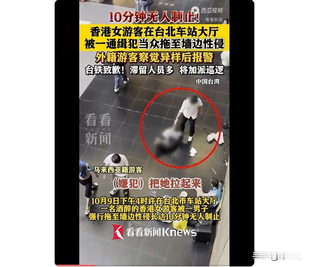 光天化日之下,当街性侵女性,这是咋着了?礼义廉耻呢?道德法治呢? 看看新闻报道,在十月九日下午四点(光天化日之下),在台北的车站(大庭广众),性侵女子,历时十多分钟,无人制止,最后是一个外籍人士报的警! 还有道德吗?还有法律吗? 本想批评民进党治下的台湾法制问题,但联想前段时间,一个外籍男子在广州向一位外籍女游客表白,不依不饶,最后也是路人出手才使得外籍女游客得以脱身,但那位骚扰的外籍男子没有听说受到任何的惩罚!所以也就不批评了! 唉,我能做到的是我遵守法律!