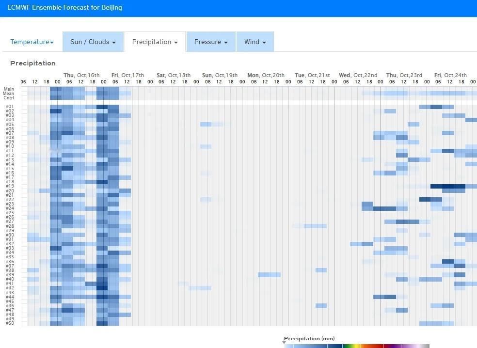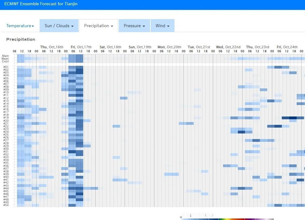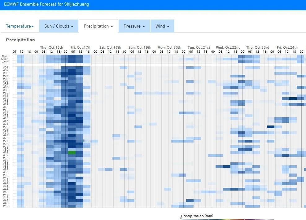 10.15-18:00 北京城区:今夜前半夜有雨的可能性不大,后半夜到上午小阵雨可能性很大,明天下午有雨的可能性不大,明天夜间到周五上午小阵雨可能性很大,周五下午到周六无雨。 石家庄市区:今夜无雨,明天白天到周五傍晚有持续性小雨天气,周五夜间到周六无雨。 天津市区:今夜到明天有雨的可能性不大,周五上午小阵雨可能性较大,周五下午到周六无雨。 未来三天: 北京周五下午到夜间偏北风明显,周五夜间气温开始明显下降。 石家庄风力不大,周六早上气温开始明显下降。 天津明天白天偏东风明显,周五下午到夜间偏北风明显。周五夜间气温开始明显下降。 京津冀实时雷达图参见图一,京津冀其他区域今夜20点到明晚20点降雨状况可以大致参考一下图二。 图三到图五分别为北京城区、石家庄市区、天津市区近期EC模式降雨散点图。 彩云天气对于未来天气趋势标注非常清楚,包括当天天气现象(雨的量级),白天和晚上天气,温度变化趋势和风向风力都一目了然,雷达图也非常精确,对比其他天气软件准确性和及时性更优。