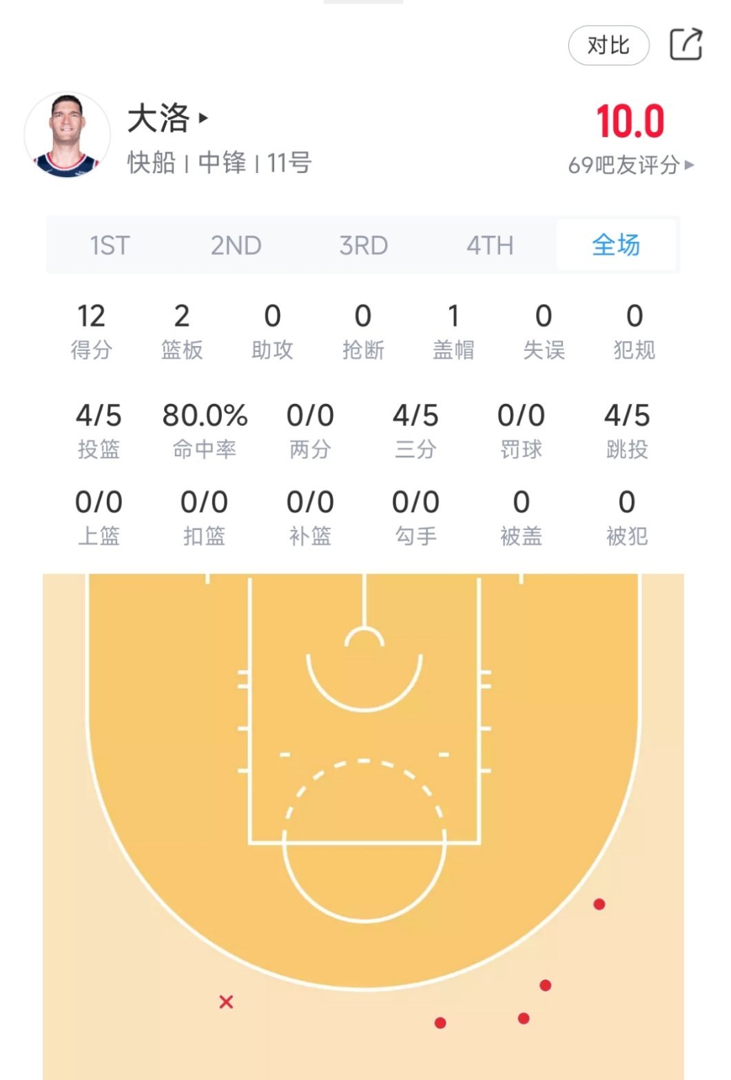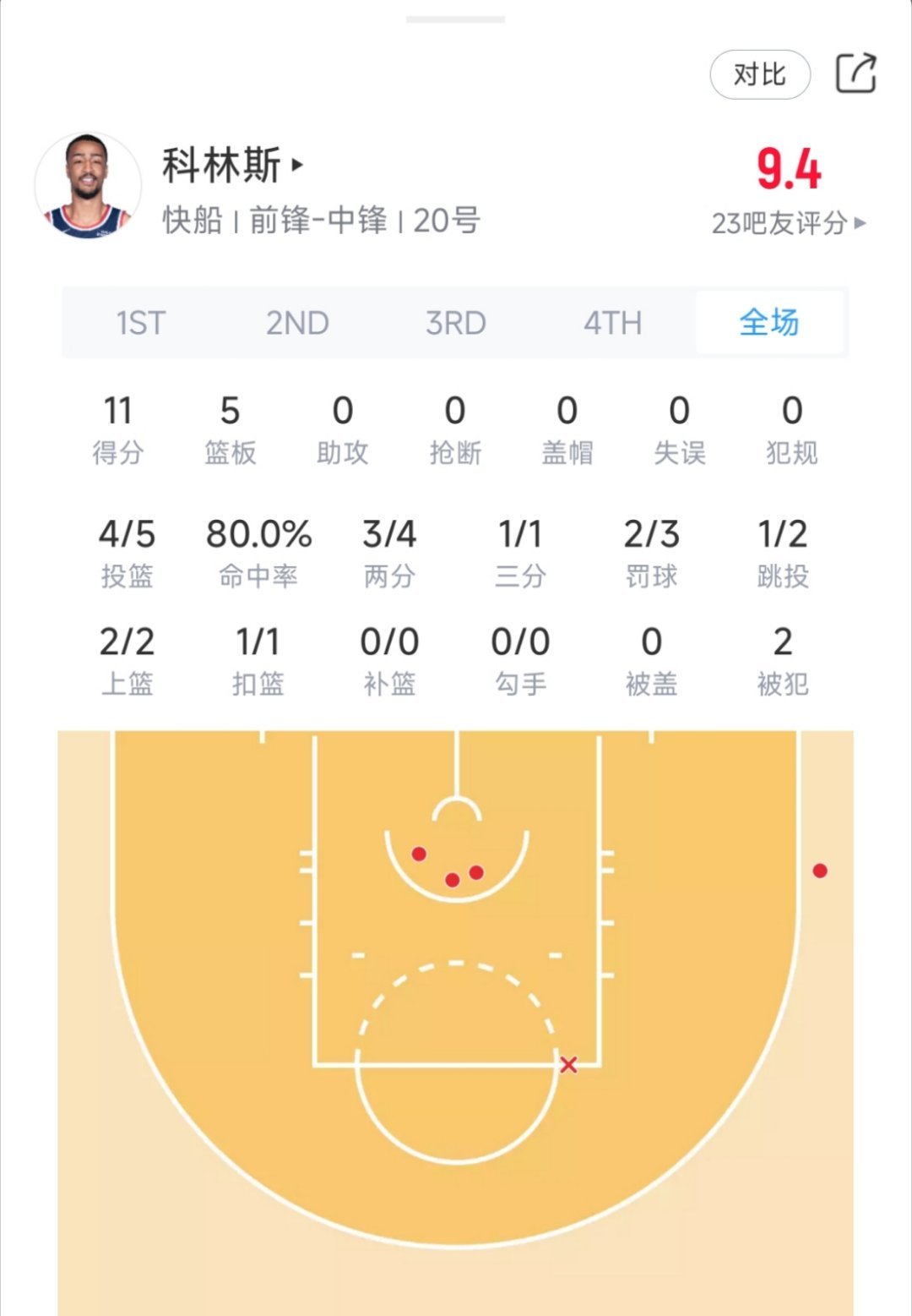 首发内线上半场表现!