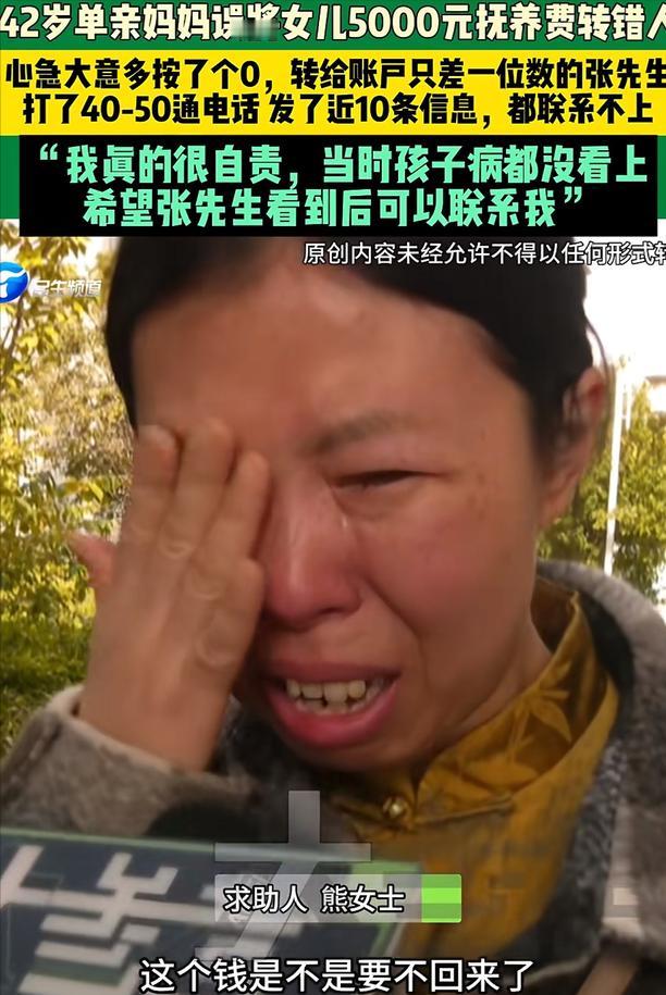 10月13日河南郑州,42岁单亲妈妈要给女儿看病,急需一笔费用,于是,将女儿卡上的5000元抚养费转到自己卡上。岂料,手一滑,竟不小心点多按了一个“0”。结果,把钱转到别人账户上了。 女子急了,赶紧联系对方,可给对方打过去40多个电话,对方均未接听。钱要不回来,孩子也没看上病,女子很自责。无奈之下,联系上了媒体,希望对方看到报道后,主动把钱归还,哪怕包个红包也可以。 2025 年 10 月的郑州,秋风卷着落叶扑在医院玻璃窗上。口腔科诊室里,10 岁的小雨仰着小脸,手指轻轻碰了碰缺牙的牙龈,声音细细的:“妈妈,是不是钱要不回来,我的牙就一直疼呀?” 熊女士刚挂掉第 43 个无人接听的电话,手机屏幕还停留在转账记录页 —— 收款方 “张先生” 的名字旁,5000 元的金额刺得她眼睛生疼。 她蹲下身抱住女儿,后背抵着冰凉的墙,眼泪砸在小雨的校服上:“不会的,妈妈一定有办法,一定让你看好牙。” 诊室门口的王医生叹了口气,悄悄把缴费单上的 “加急治疗费” 划掉,改成了 “暂缓结算”,还塞给熊女士一张纸条:“这是公益医疗援助的电话,或许能帮上忙。” 2025 年 10 月 8 日傍晚,熊女士的出租屋里还亮着灯。 饭桌上摆着剩菜,女儿小雨趴在桌边写作业,时不时皱着眉捂嘴 —— 乳牙滞留导致恒牙错位,医生说必须尽快拔牙矫正,不然会影响脸型。 “妈妈去转钱,明天就带你去看病。” 熊女士拿起手机,点开女儿的抚养费银行卡,指尖在屏幕上颤抖。 5000 元是前夫刚打过来的抚养费,也是母女俩下个月的生活费。她盯着收款账户栏,明明记得自己的卡号尾号是 “368”,可心急之下多按了个 “0”,变成了 “3680”。 “转账成功” 的提示弹出时,熊女士的手机 “啪” 地掉在桌上。小雨吓了一跳,抬头看见妈妈脸色惨白,手不停地拍大腿:“都怪我!都怪我太急了!” 10 月 9 日清晨,熊女士带着女儿赶到医院,却只能在缴费窗口前徘徊。她站在走廊里给张先生打电话,听筒里重复的 “您拨打的用户无人接听” 像针一样扎耳朵。 “阿姨,您怎么了?” 护士递来一杯热水,熊女士才发现自己的手一直在抖。她又发了短信,把女儿的病历拍过去,连打了三个 “求求您”:“这是孩子的救命钱,我给您包红包感谢,求您把钱转回来。” 直到中午,手机还是没动静。她去派出所报警,民警查了张先生的信息 —— 本地人,30 多岁,经营一家小建材店,民警尝试用工作电话联系,依旧无人接听。 “只能走法律程序了,我们帮你联系法律援助中心。” 民警递来一张申请表,熊女士攥着表,眼泪又忍不住掉下来:“可孩子的牙等不起啊!” 10 月 12 日,熊女士抱着最后一丝希望找到媒体。摄影棚的灯光亮起时,她看着镜头突然说不出话,眼泪先掉了下来:“我就多按了一个 0,怎么就把孩子的看病钱弄丢了……” 她掏出皱巴巴的病历本,指着 “建议 7 日内拔牙” 的诊断记录,声音哽咽:“张先生,就算您没看到短信,也求求您查查账户,那 5000 块是孩子的救命钱啊!” 报道当晚就上了热搜,社区居委会也联系了熊女士,不仅帮她整理起诉材料,还发动居民捐了 2000 多元;之前王医生提到的公益组织也打来电话,承诺承担小雨的部分治疗费用。 很快熊女士在法律援助律师的陪同下,向法院提交了起诉状。律师帮她整理了转账记录、短信截图、病历等证据:“根据《民法典》,对方这种情况属于不当得利,就算他一直不回应,法院也能缺席判决,后续还能申请强制执行。” 那天回到家,小雨从书包里掏出一张画,上面是两个牵手的小人,旁边写着 “妈妈别难过,小雨不怕疼”。 熊女士把女儿搂进怀里,心里又酸又暖 —— 虽然张先生始终没回应,但身边的善意,让她有了坚持下去的勇气。 公益组织的援助款到账了,小雨的拔牙手术定在了 11 月初;社区还帮她找了份超市理货的兼职,工资能补贴家用。 手术前一天,小雨拉着熊女士的手说:“妈妈,就算张先生不还我们钱,我们也能看好牙,对不对?” 熊女士点点头,摸了摸女儿的头:“对,因为我们身边有好多好人帮忙。”如今,小雨的拔牙手术很成功,正在进行后续矫正。 熊女士的起诉状还在等待公告期满,律师说 “就算对方一直躲,也能通过冻结账户等方式追回钱款”。 每次去社区办事,居民们都会问起进展,有人还会特意多买些菜送她;王医生也常打电话询问小雨的恢复情况。她知道,那 5000 元或许还没回来,但这段经历教会她的坚韧与善意,早已比金钱更珍贵。 信源:单亲妈妈误将女儿看病钱转错人无法联系上对方 律师:如银行提供帮助,可增加追回机会 2025-10-14 19:55·红星新闻