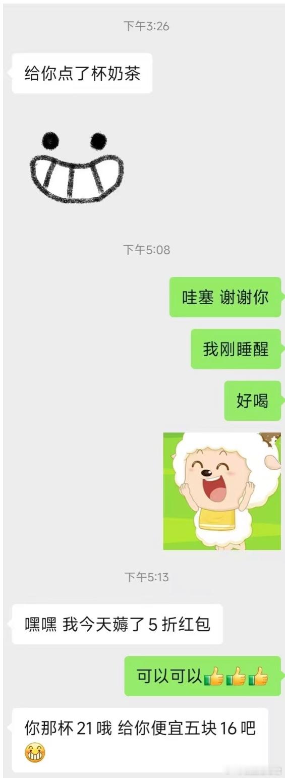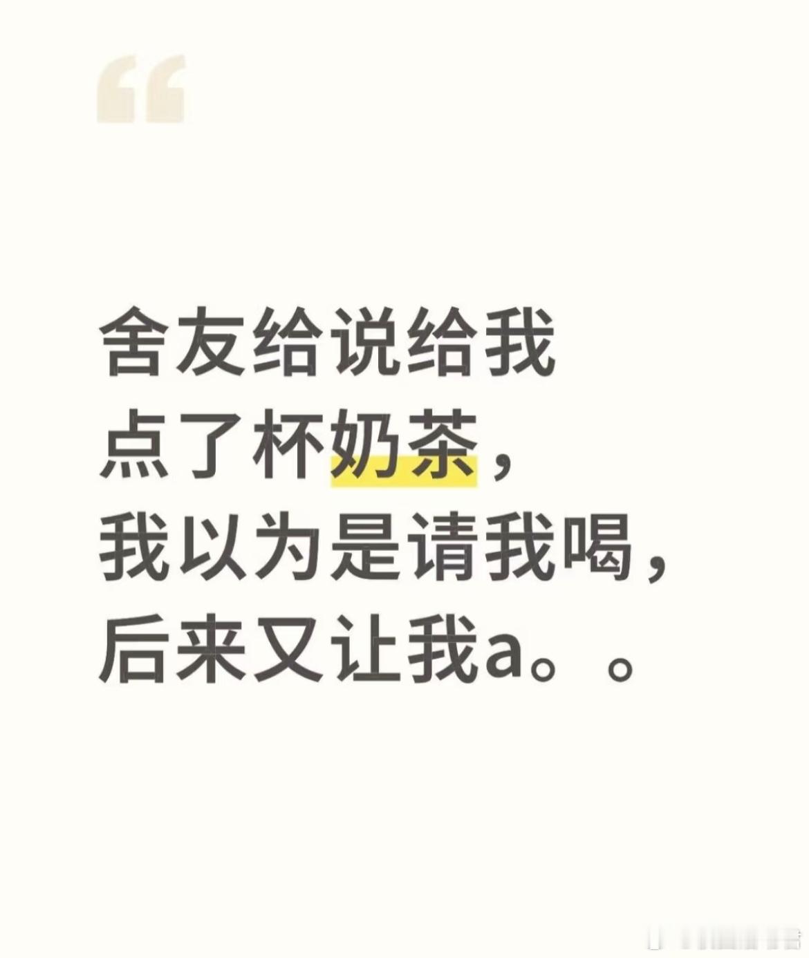舍友给说给我点了杯奶茶,我以为是请我喝,后来又让我a[哆啦A梦害怕]