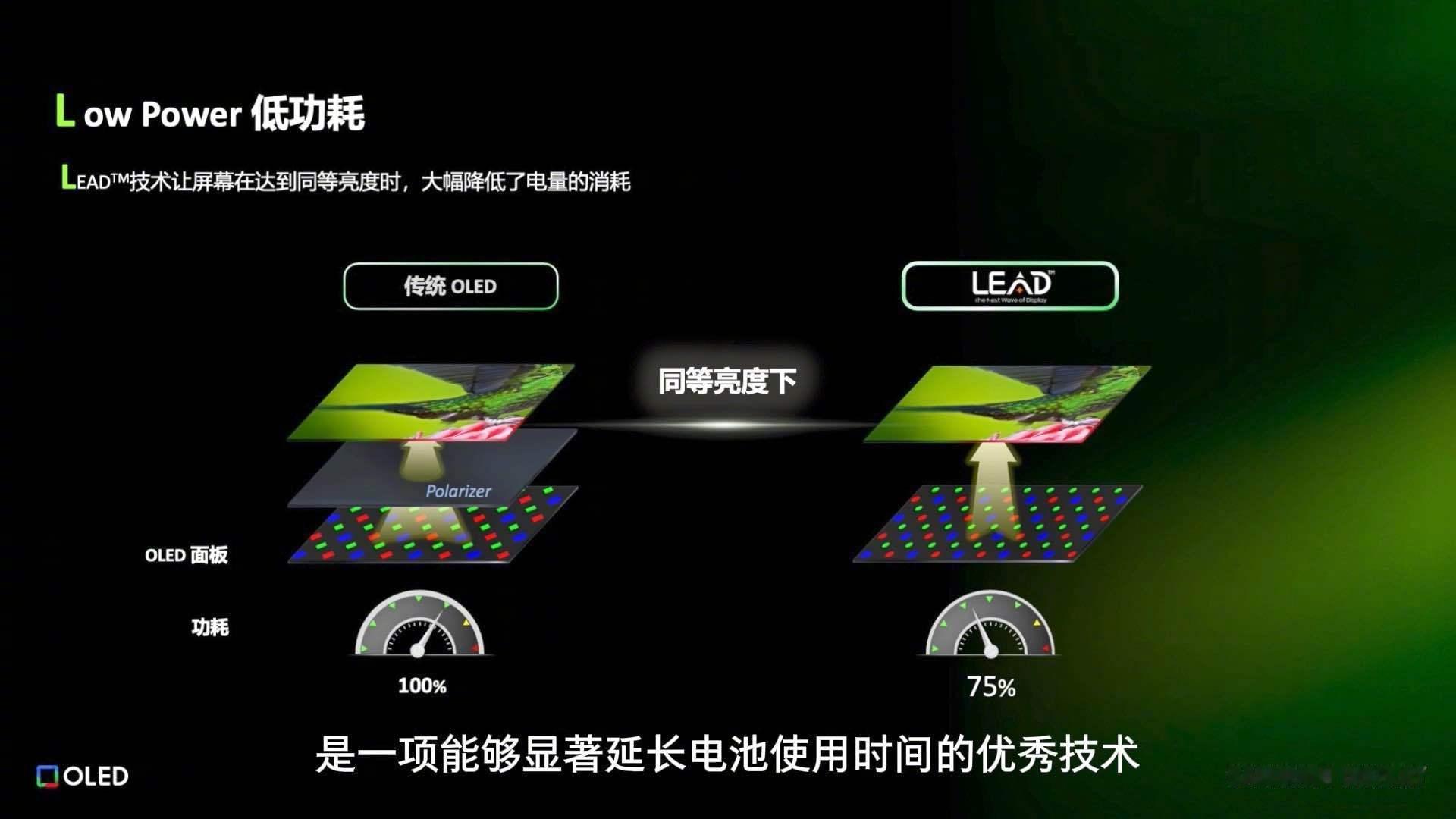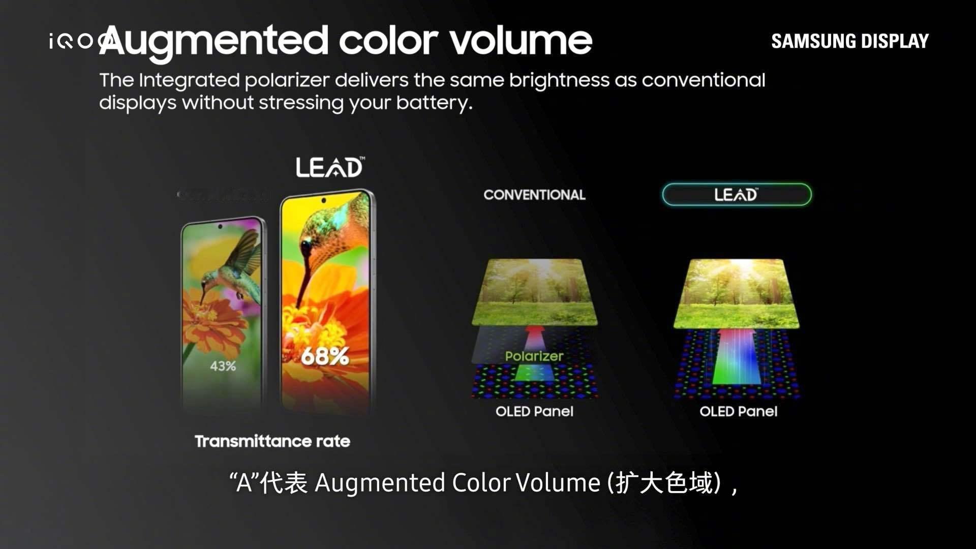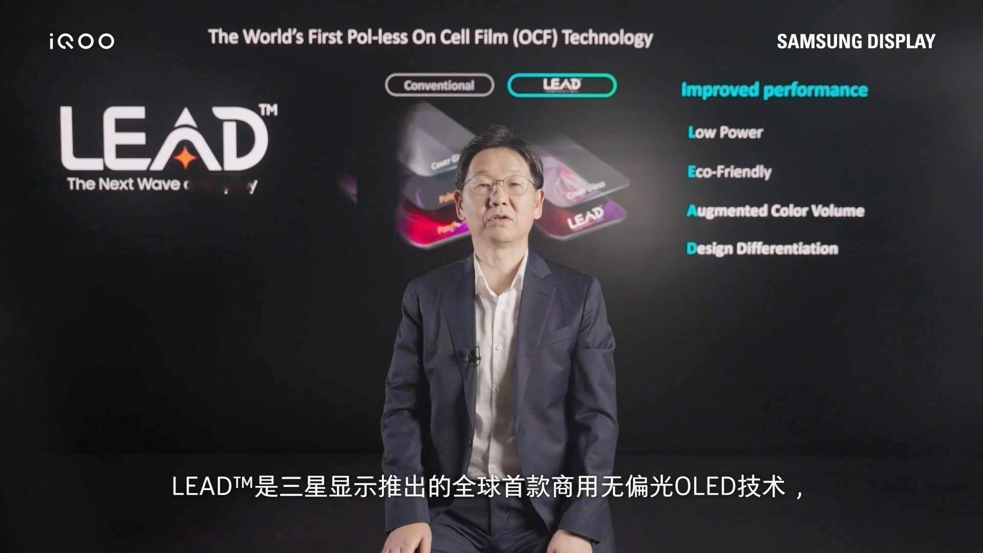 全新的 LEAD™ OLED 层叠结构采用玻璃面板、纳米光刻滤光层、发光材料与驱动背板四层设计,通过 iQOO 定制的高精度光刻机,实现像素级光线控制。LEAD™ 技术摒弃了传统偏光片结构,结合纳米滤光层,大幅提升光透率并降低能耗。