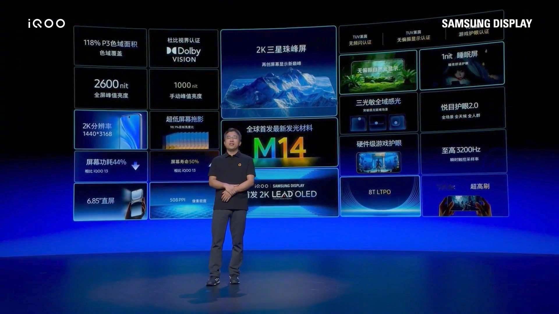 iQOO15这次搭载的 2K 三星 LEAD™ OLED 珠峰屏,可以说是一次跨代级的屏幕升级。它不只是亮度更高,更在能效、寿命、护眼、显示精度等方面全面突破。