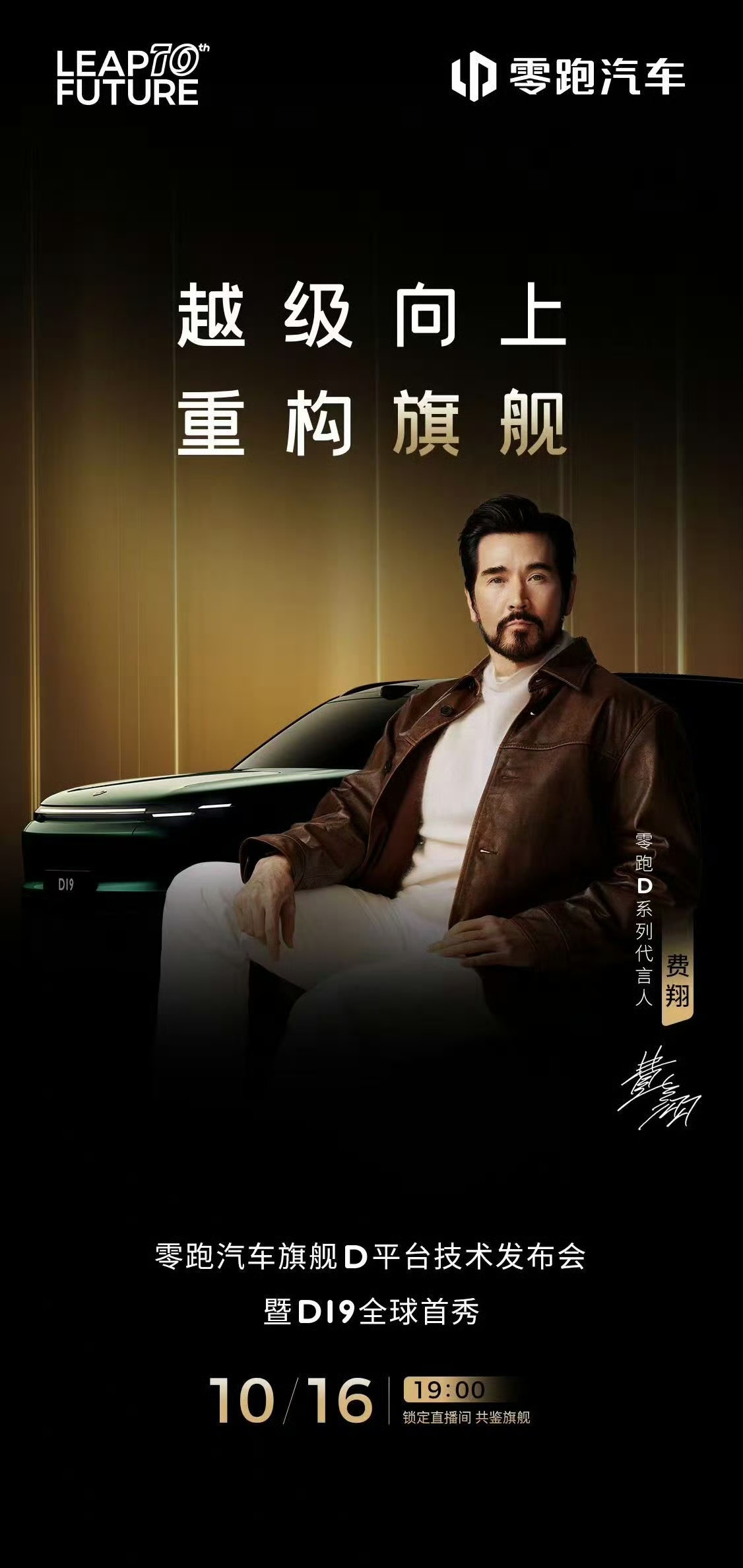 零跑旗舰D平台技术发布会暨D19全球首秀即将启幕,零跑已官宣费翔为D系列代言人,他本人也将现身此次活动。