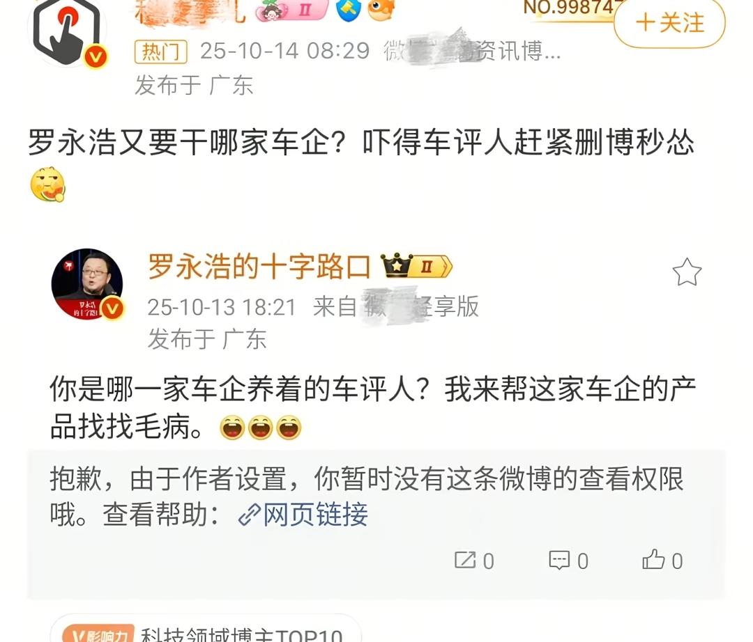一个说车的你惹罗永浩干嘛 这下被扒出来看你老板不公关你才怪 79万粉丝的说车博