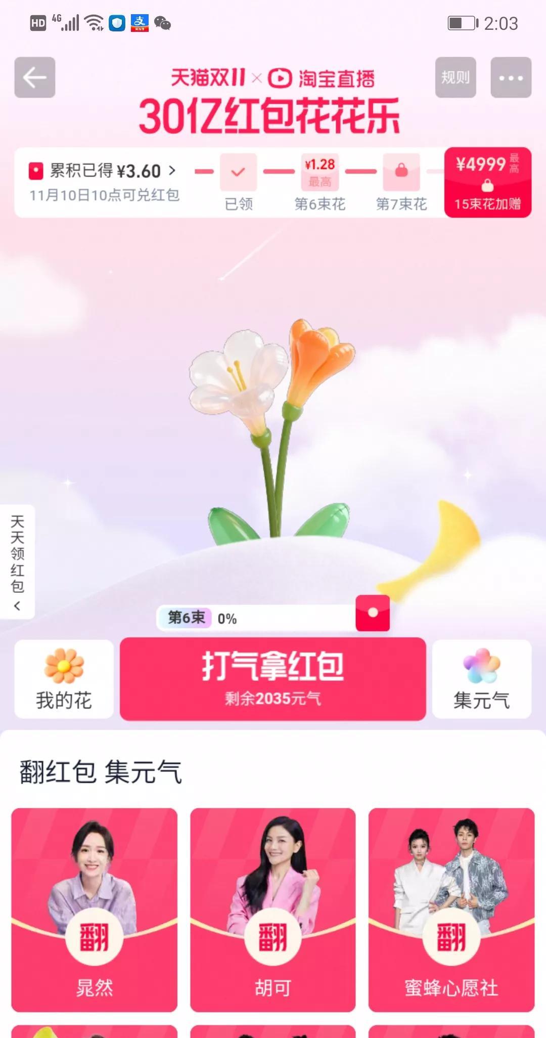 双11预售活动开始了。 好像大家的热情不太高。 淘宝有个活动,有兴趣的朋友可以参加一下。 打开淘宝,找到狂撒30亿,点开,来到新的界面,然后再点狂撒30亿,然后就集元气,得红包。 红包11月10兑换: