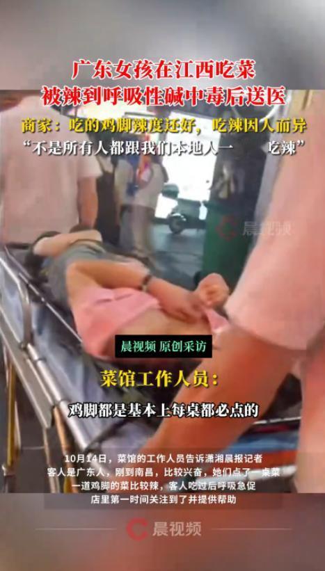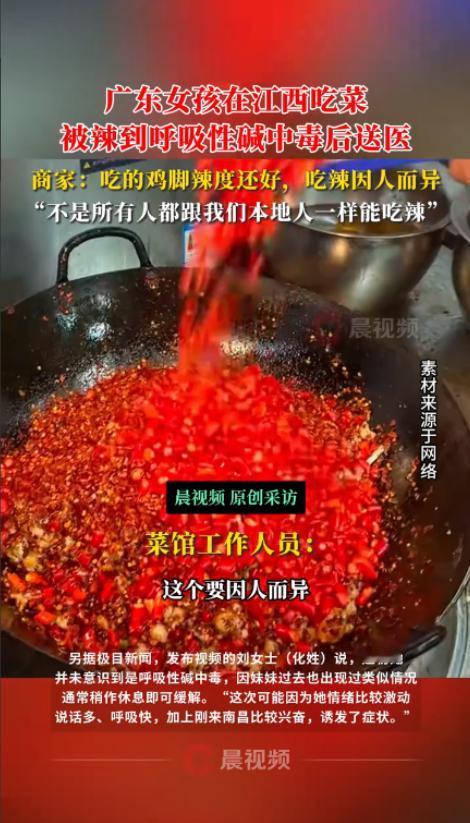 这下真是“出名出圈”了! 不仅江西人知道了,全国网友都在围观:一个广东妹子,被江西的辣菜辣到呼吸性碱中毒!是的,你没看错——吃顿饭,吃出个医疗事故现场。这要不是亲眼看到新闻,谁敢信? 信息来源:《广东女子在南昌吃小炒辣到“呼吸性碱中毒”送医,店家:只有一盘较辣,已为其免单》红星新闻 10月5日,国庆假期,广东的刘女士带着妹妹去南昌旅游。 好不容易放假,姐妹俩打算犒劳一下自己——山美水美,人也美,当然得吃顿地道的江西菜才算不虚此行。 她们选了一家口碑不错的南昌特色小炒店。 刚翻开菜单,两人瞬间被那些菜名勾起了食欲——什么“藜蒿炒腊肉”“椒香田鸡”“小炒黄牛肉”,听着就让人嘴馋。 不过刘女士清楚,广东菜偏清淡,她们平常吃点胡椒就算“重口味”了。 于是俩人商量好:点几道微辣或不辣的菜,尝个新鲜就行。 但妹妹嘛,年轻气盛,嘴巴也比姐姐“勇敢”。 她眯着眼笑道:“来都来了,不尝尝江西的辣,不算真到过南昌!” 于是,她果断点了一道——“本地正常辣度”的小炒牛肉。 菜一上桌,香气扑鼻,红油翻滚,辣椒像小火山一样散着热气。 妹妹迫不及待夹了一筷子送入口中。 刚开始,她表情淡定:“哎,还行嘛,不算太辣。” 可不到三分钟,她的脸色开始变了——由粉转红,由红转紫,最后整张脸像是被辣椒染了色。 她拼命灌水,喝了三大杯冰水,还是不行。 呼吸越来越急促,头也晕了,手开始抖。 “姐,我、我头好晕……胸口发闷……” 刘女士当时吓坏了——还以为妹妹是辣得哭,结果人都开始抽搐! 店员一看情况不对,立刻冲过来帮忙,一边拨打120,一边指导她深呼吸。 几分钟后,救护车赶到,把妹妹送去了医院。 医生检查后说——是“呼吸性碱中毒”! 原因就是——辣味刺激太强,导致她呼吸过快,血液中的二氧化碳排得太多,从而出现了头晕、抽搐等症状。 好在发现及时,休息一会儿后就恢复了。 店家也挺厚道,当场免了单。 “这不是辣,是‘致命调料’!” 这事一上热搜,网友笑着笑着就认真了。 有江西人说: “我们这边的‘正常辣’,对外地人来说,已经是‘地狱级’难度了。” 有四川人在评论区补刀: “欢迎加入辣椒修罗场,一碗火锅底料了解一下?” 也有广东网友哭笑不得: “我们那的辣椒基本只是装饰品,没想到在江西成了‘武器’。” 但也有医生出来科普 呼吸性碱中毒虽然听着吓人,但其实是一种短暂的生理反应。 当人因为辣、疼、紧张等原因呼吸过快,就可能造成体内酸碱失衡,引发头晕、手抖、肌肉痉挛。 听起来很专业,但归根结底一句话:辣得太猛了! 不知道在看文章的阁下是哪里的人呢?你对当地辣的美食又有哪些呢?欢迎大家在评论区探讨哦!
