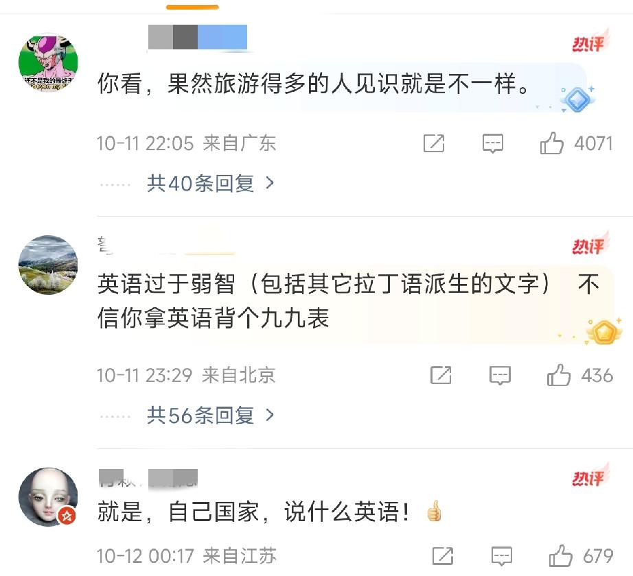 最近有个话题火了。几位来华旅游的外国游客直言“中国不说英语很正常”,结果意外掀起一场关于文化尊重的讨论。 先看外国游客咋说的。一位加拿大游客点出关键:中国没被殖民过,汉语扎根几千年,本来就是主体语言,这有啥问题? 对比香港、印度这些曾被英国殖民的地方,英语普及反而带着历史伤痕。 还有美国网友直接开怼:你去别人家做客,还嫌主人不说你的方言?这理直气壮的态度,分明是“旅游礼仪”没学好! 中国网友的回应更犀利。有人甩出灵魂质问:中国人去欧美旅游,有几个当地人会主动用中文服务?怎么到了中国,就成“必备技能”了? 更有人翻出数据打脸:中国学英语的人数比英国总人口还多,但14亿人里,凭什么要求卖菜大妈也得会英语?法国人、西班牙人照样理直气壮讲母语,咋没人指手画脚? 其实大家争的不是语言,是平等。现在翻译软件这么方便,高铁站有英文标识,景区有双语导览,够用了。 非要挑刺的,怕是忘了旅游的本质是体验差异,不是让全世界围着自己转。 说到底,文化自信不是硬邦邦的拒绝,而是有底气的包容。 当外国游客学着说“你好”,当中国用科技和热情打通交流壁垒,这种双向奔赴,比争论“说不说英语”酷多了。
