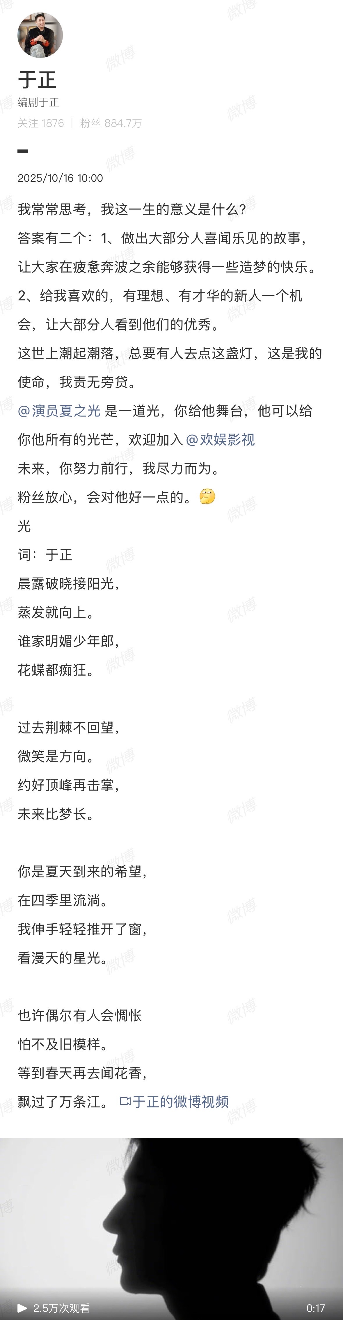 于正发文庆祝夏之光签约欢娱夏之光竟然去了欢娱!在《九重紫》中的夏之光表现很好,期