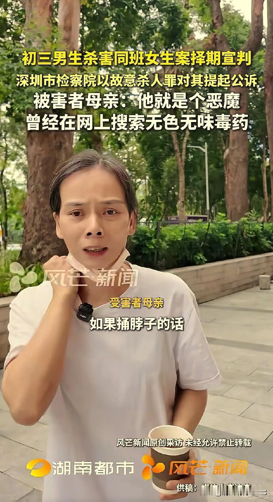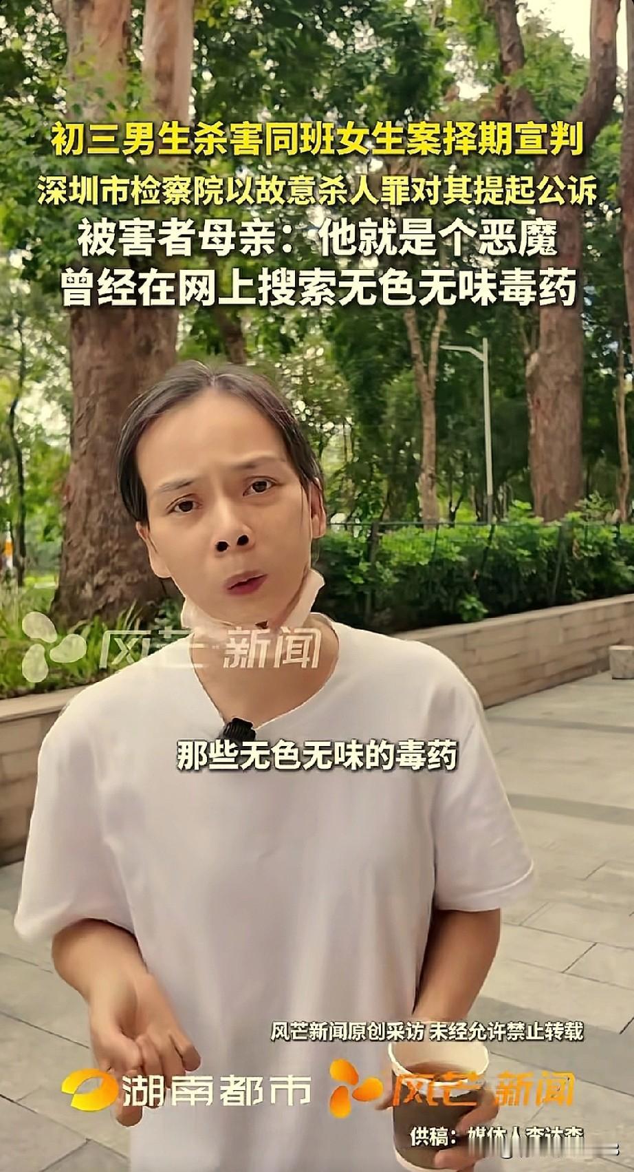 深圳被同学杀害的初三女生优优的妈妈说,钟某就是一个恶魔,他还在网上搜索杀人的方法