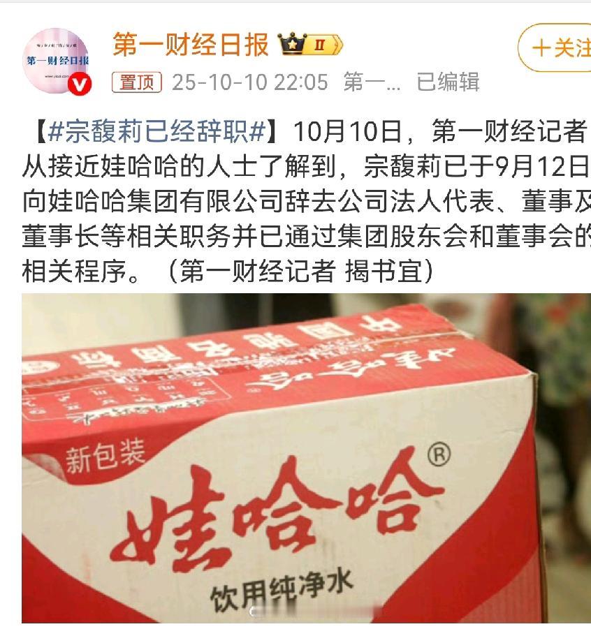 宗馥莉还是输了 所有人都以为她是宗庆后的独生女 一定能够独当一面,继续把娃哈哈发扬光大。 可是,结果,她在这场家族大战中败了下来。 宗庆后给他的几个私生子留下了上亿的资产,可是宗馥莉不接受,就采取了相应的措施,可结果的结果,几位私生子没有受任何损失,而宗馥莉最后连娃哈哈掌权人都不是了。 据最新的新闻报道,宗馥莉已于9月12日辞去娃哈哈公司法人代表,董事及董事长相关职务。 看来,宗馥莉以后都跟娃哈哈没有任何关系了。 不知道,如果宗庆后还在世,看到自己的爱女现在这样一个状况,会作何感受?