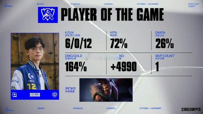 全程攥紧拳头看比赛!开局 4 分钟 Doggo 的德莱文就配合队友单杀对面上单,回家直接掏出暴风大剑,这发育速度简直离谱!中期直接化身移动提款机,厄塔汗团战里刀刀见血,追着 T1 众人砍,连 Faker 都被他三度单杀,解说喊得嗓子都哑了!📣