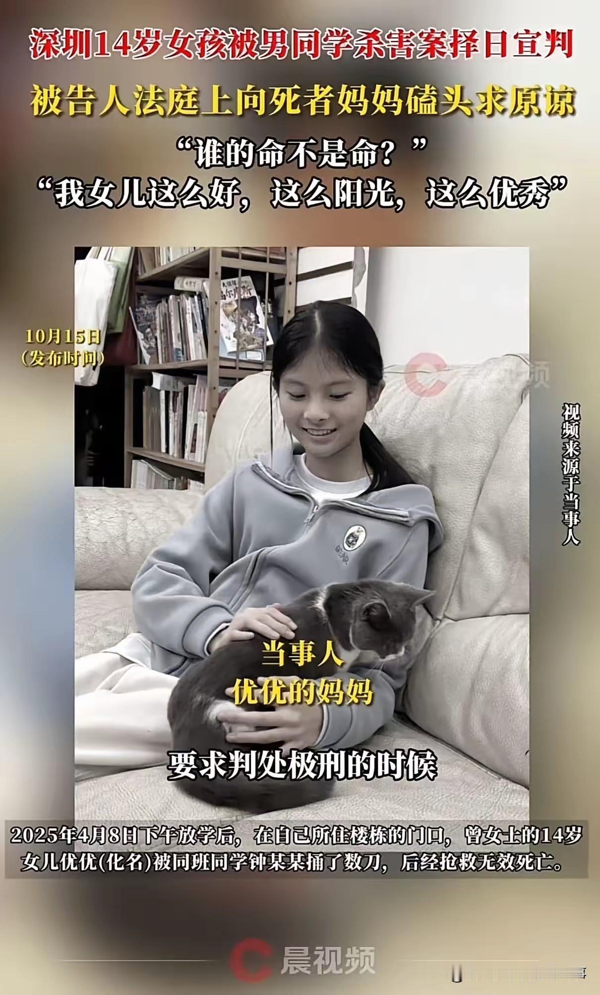 三年接送暖不透一颗嫉妒心:15岁少年行凶,法庭上的磕头换不回14岁生命 深圳一所中学的校园,本应是青春懵懂的净土,却因一场恶意戛然而止。15岁的男生陈某,因嫉妒同班14岁女生小琳(化名)的成绩与人际关系,在一个普通的放学后,将罪恶的双手伸向了这个曾与他朝夕相处的同学,残忍将其杀害。 更令人痛心的是,小琳的母亲在此前近三年的时间里,出于善意,每天顺路接送陈某上下学,把他当作自家孩子般照顾,从未想过这份温暖竟养出了一只“白眼狼”。当小琳的遗体被发现时,这位母亲的世界瞬间崩塌,昔日的善意成了如今最锋利的刀子,反复割裂着她的心脏。 法庭上,小琳的母亲身着黑衣,字字泣血,强烈要求判处陈某极刑。面对受害者家属的悲痛控诉,一直沉默的陈某突然当庭跪下,不断磕头祈求原谅,试图用廉价的忏悔换取一丝生机。可小琳母亲的反问,让全场陷入死寂:“你的命不是命?你杀害我女儿的时候,有想过放她一马吗?” 这声质问,不仅是一位母亲的绝望呐喊,更是对人性之恶的深刻叩问。近三年的接送恩情,抵不过一时的嫉妒之火;同学间的朝夕相处,敌不过内心的阴暗扭曲。小琳的离去,带走了一个家庭的所有希望,也给社会敲响了警钟:在关注孩子成绩的同时,更要重视其心理健康与人格教育,否则,再优异的成绩,也无法掩盖内心的荒芜与残忍。 而陈某的磕头忏悔,在失去生命的小琳面前,显得格外虚伪与苍白。生命无法重来,善意不容践踏,这场悲剧留下的,除了一个家庭的永久伤痛,还有对“何为教育”“何为人性”的沉重思考。 需要我将这个事件整理成一份更侧重警示意义的短评吗?可以聚焦“校园心理健康”和“青少年法制教育”两个角度,适合在社区或家长群中传播,引发更多人对相关问题的关注。未成年人杀人 中学生的悲剧 少年重伤案 初中生盗窃 素材来源于网络,如有侵权电话联系删除。