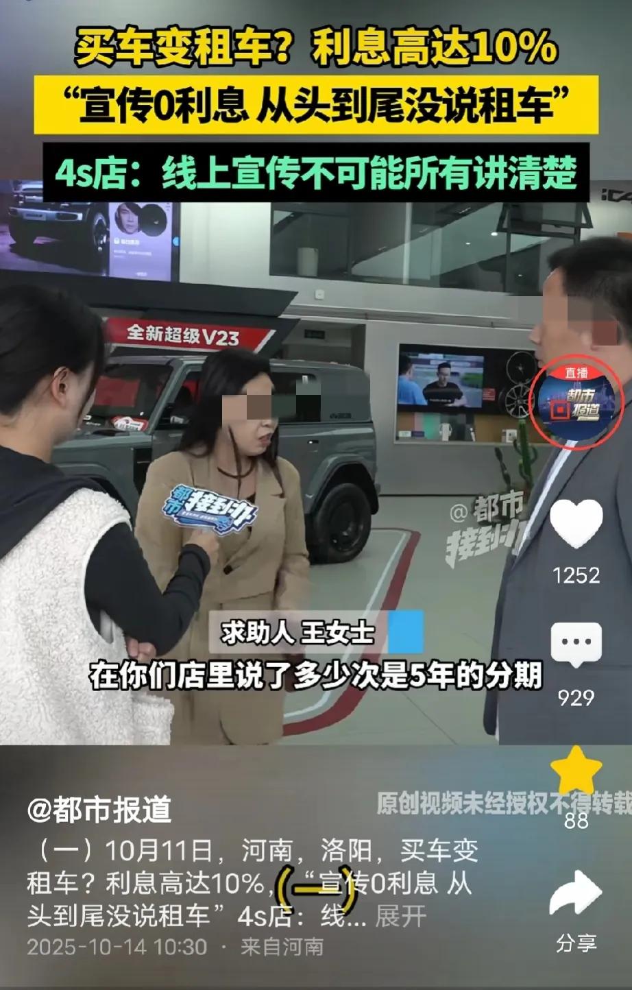 河南洛阳,女子的孩子大学毕业2年,想要买辆车,钱不够,4s店推荐0首付0利息,只需付月供,车子总价138000元,女子觉得挺划算,赶紧让孩子签合同,没想到,合同签完才知道,这根本不是正经买车,而是融资租赁,5年期间,车子只有使用权没有所有权,更坑的是,利息高达10%,连本带利一共要还17.4万元,女子又气又急,找媒体协助,4S店的回答让人大跌眼镜。 王女士的女儿大学毕业两年多,上班也有2年了,为了出行方便,她一直想买辆车,但由于资金不足,王女士也没有足够资金帮孩子。 所以,这事就一直搁一边。 今年10月11号那天,王女士跟孩子出门逛街,母女俩路过4S店的时候,一个显眼的招牌吸引住了他们。 一辆汽车顶上有一块牌写着:0首付0利息。 王女士和女儿忍不住走进店里去看,之后,工作人员跟他们介绍那款车现在买很划算,可以享受0首付0利息。 王女士的女儿看那车型,是自己喜欢的类型,期间,店员一直跟他们介绍着那款车是如何如何好,又是0首付0利息,总价只要13800元,各种吹得天花乱坠。 王女士想到,既然不要首付也不用利息,每个月只需要供几千块钱,这个他们还是可以接受的,算起来还挺划算。 她简单跟女儿商量了一下,就决定了买下那辆车。 之后,王女士让女儿跟店员去签合同,王女士的女儿看到有几份电子合同。 他也没有细看,他认为合同里写的,基本上也是店员说的,既然店员已经跟母亲解释清楚了,自己也没有必要再去较真。 所以,王女士的女儿拿到合同后,在店员的引导下快速签完名。 没想到,签完合同后不久,他无意中得知,他们那根本不是买车,而是融资租赁,也就是说,5年内车子根本不是他们的,他们只有使用权,没有所有权。 更离谱的是,利息高达10%,他仔细算了一下,他们一共得还17.4万元,这跟店员说的车子13.8万相差好几万呢。 王女士知道后瞬间火了,她找店员理论,可跟店员根本说不清。 说好的0首付0利息买车,没想到变成租车,费用还贵那么多,王女士一想就一肚子火,气不过的她,隔天就找来媒体曝光。 记者跟着王女士去到4S店,一名站在门口的店员接待了他们。 店员说,5年0息/万元补贴,不代表5年0首付0利息,这是两码事,5年0息没有问题,但不是他们买的这款车型。 之后被记者问多了,那名店员解释说,他不是跟王女士母子对接的当事人,他只是站在门口接待,等一会儿经理会过来跟他们解释。 没多久4S店经理过来了,经理解释说,不管是融资租赁还是抵押,这些规矩都是分期公司定的,跟他们没关系,他们也不知道这是租赁的形式。 而且在他看来,只要是贷款买车的,本来就只能用车,没法真正拥有这车的所有权。 记者问经理,当时签合同的时候有没有跟她们说清楚是以融资的形式,经理说可能忘记说了,而且合同里已经写得很清楚了,她可以看得到。 王女士说,他们全程都在说0首付0利息,经理回复说,王女士的姑娘一直强调,她的诉求是0首付月供4000元以内,我们就是满足她这个诉求。 王女士觉得4S店就是先忽悠她们把合同签了,后续她会通过法律途径维权。 那么,从法律角度如何看待这件事呢? 4S店作为经营者,核心义务是全面告知交易关键信息。 根据《消费者权益保护法》第8条规定,消费者享有知悉其购买、使用的商品或者接受的服务的真实情况的权利,有权要求经营者提供服务的内容、规格、费用等有关情况 。 本案中,其仅片面宣传“0首付0利息”,却刻意隐瞒交易性质为融资租赁、5年内车辆仅有使用权、实际年利率10%且总还款额达17.4万元等核心事实。 这些信息直接影响王女士母女的交易决策,4S店的隐瞒行为完全剥夺了二人的知情权,违反了该法条规定。 《民法典》第148条规定,一方以欺诈手段,使对方在违背真实意思的情况下实施的民事法律行为,受欺诈方有权请求人民法院或者仲裁机构予以撤销。 欺诈需满足故意隐瞒真相、对方产生错误认识、错误认识与行为有因果关系等要件。 4S店工作人员明知是融资租赁却按“买车”宣传,故意混淆概念,导致王女士母女误以为是普通贷款购车。 其女儿因信赖宣传未细看合同便签字,正是基于4S店制造的错误认识,完全符合欺诈的构成要件,王女士母女可据此主张撤销合同。 《汽车销售管理办法》第14条规定,供应商、经销商不得对消费者进行欺骗、误导,不得隐瞒与汽车产品相关的信息。 汽车销售涉及金融服务的,应当明确告知消费者金融服务的提供者、产品类型、收费标准等内容。 本案中,4S店将融资租赁包装成“0首付买车”,未明确告知金融服务类型为融资租赁,也未说明所有权归属、利息标准等关键收费与权利信息。 经理以“合同写了”“忘记说”为由推脱,恰恰印证其未履行告知义务,构成对消费者的误导与隐瞒,违反了该管理办法的强制性规定。 @猫眼学法
