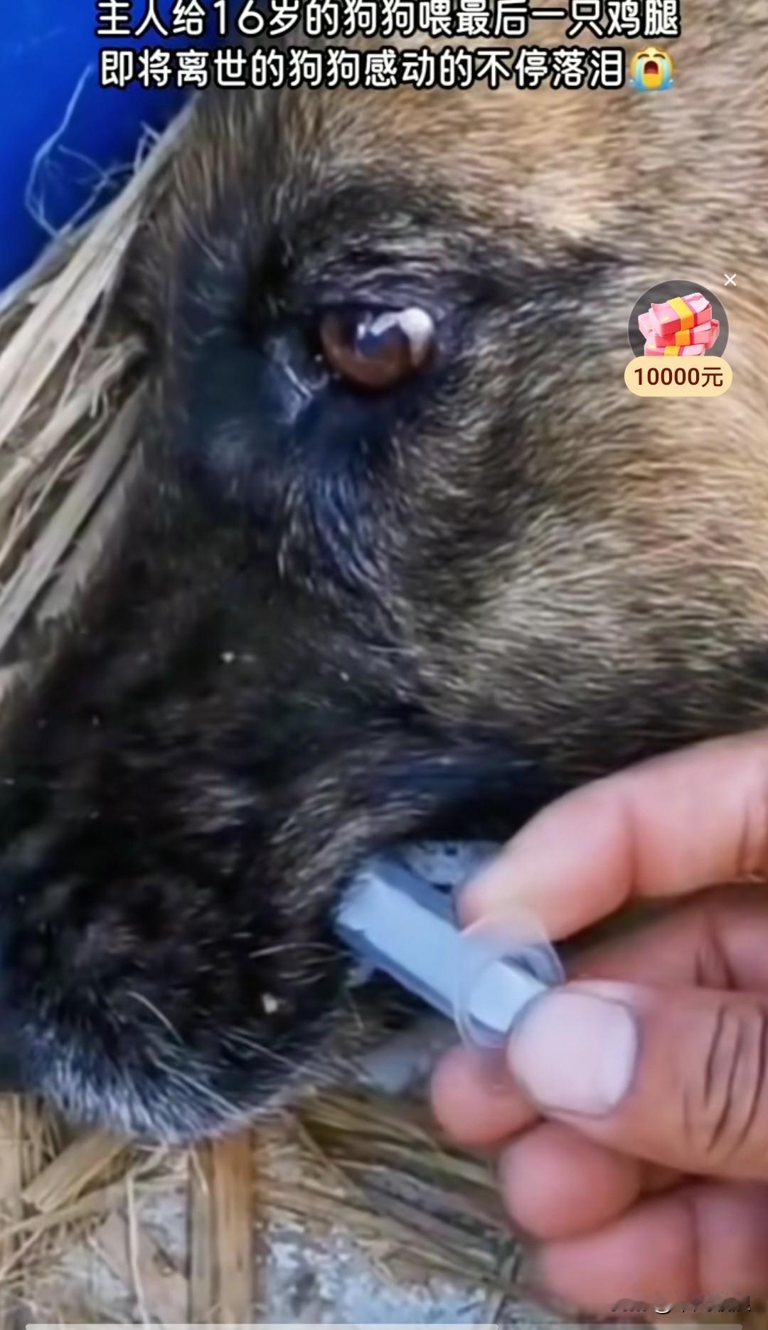 主人精心饲养了十六年的狗狗,给它喂下最后一个鸡腿。主人已倾尽全力救治,狗狗感动得泪水盈眶,最终带着感激离开了这个世界。宠物临终告别