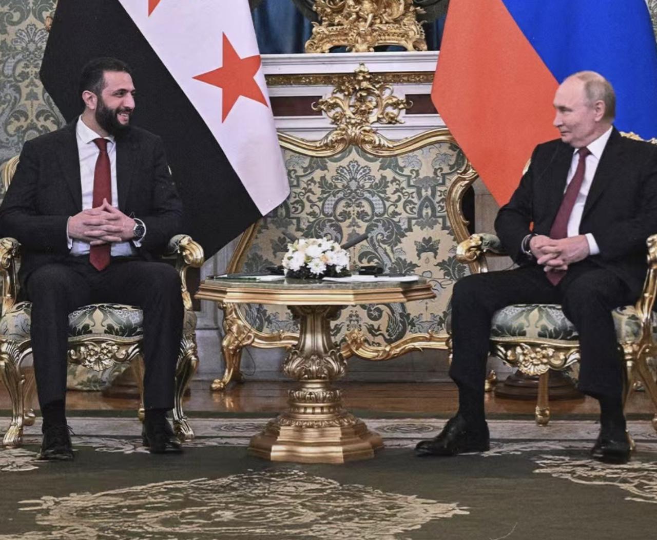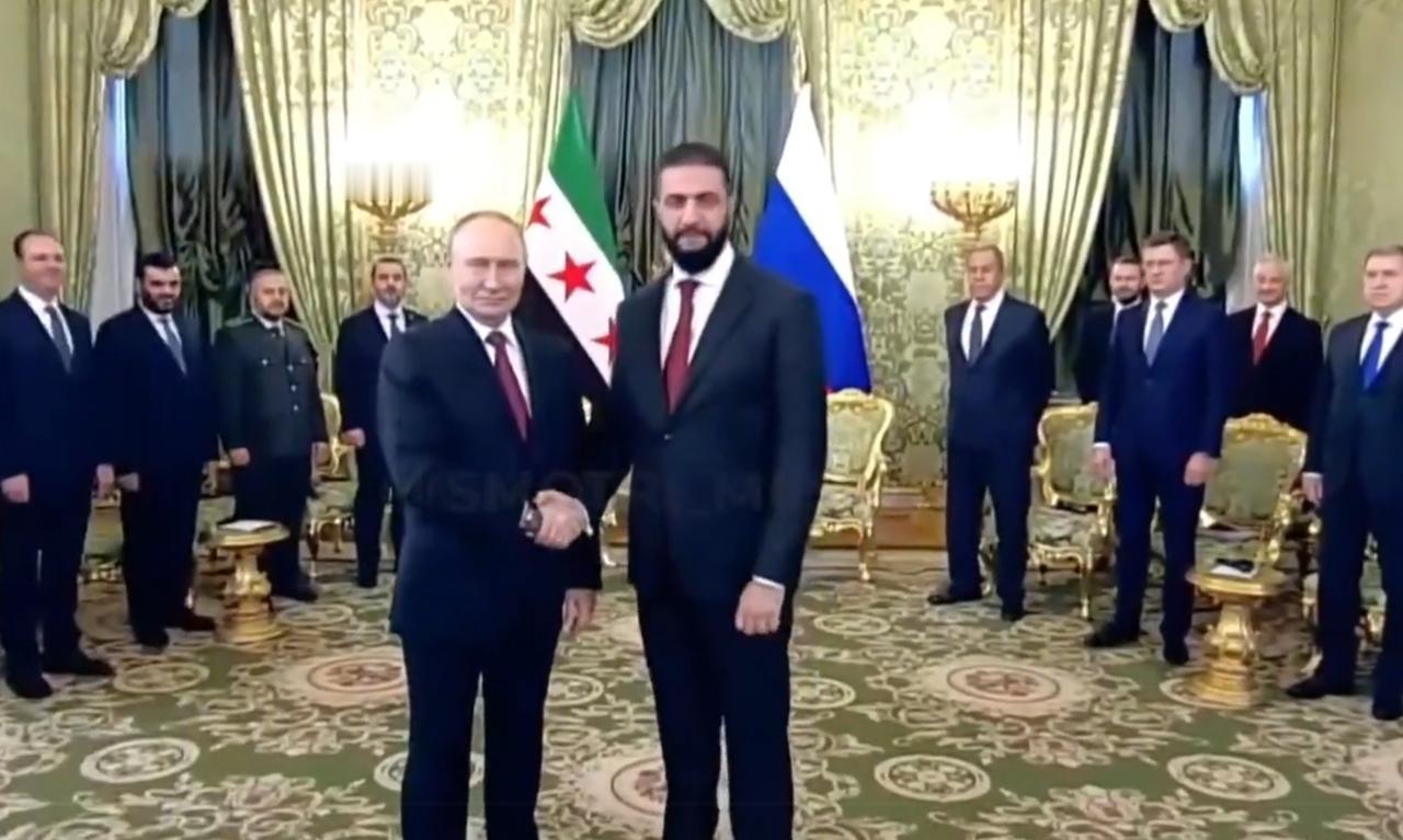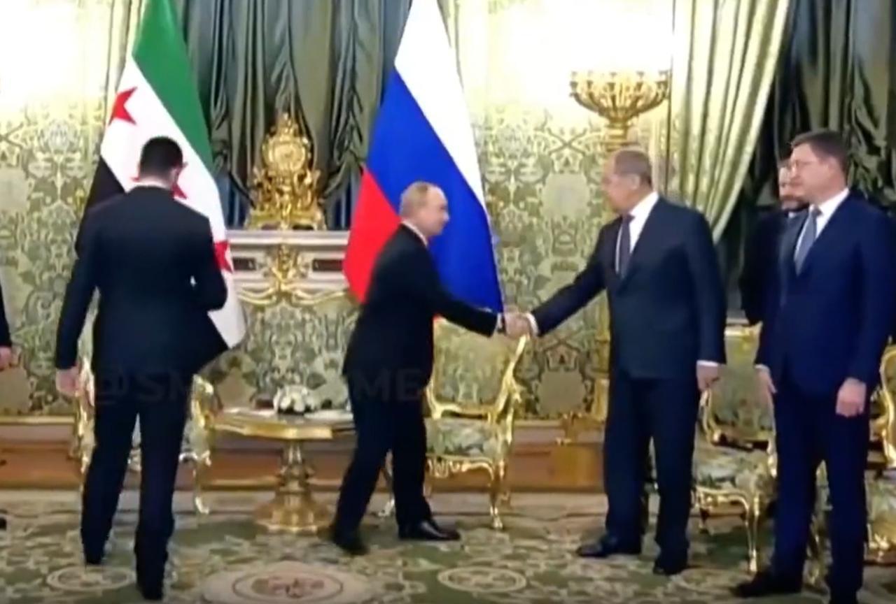 注意这两个细节,普京是真不简单。 朱拉尼访问俄罗斯,普京在与其握手之后,又跟叙利亚的官员握手。 这里面有一个细节。 普京握手的顺序,不是从高到低(官阶),而是从离他最近的叙利亚官员握起,这是有意的还是无意的呢? 另外,还有一个细节。 在跟叙利亚官员握完手之后,普京走回自己的座位,但是他并没有直接坐下,而是跟身边的俄罗斯外长拉夫罗夫握了手。 这个举动非同寻常。 一般外事活动,自己国家的领导,是很少跟自己国家的官员握手的。 普京这么做的用意,又是什么呢?