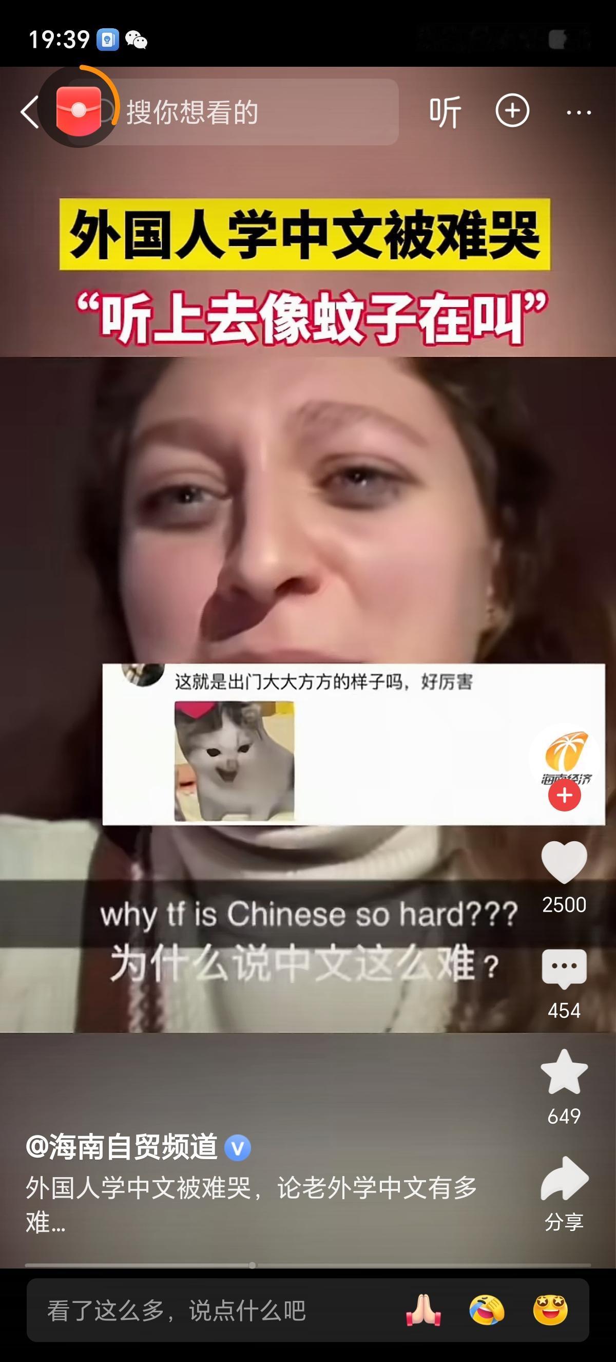 外国女孩边学中文边哭,妆都花了。不知道为啥,我一点也同情不起来,反而有点幸灾乐祸