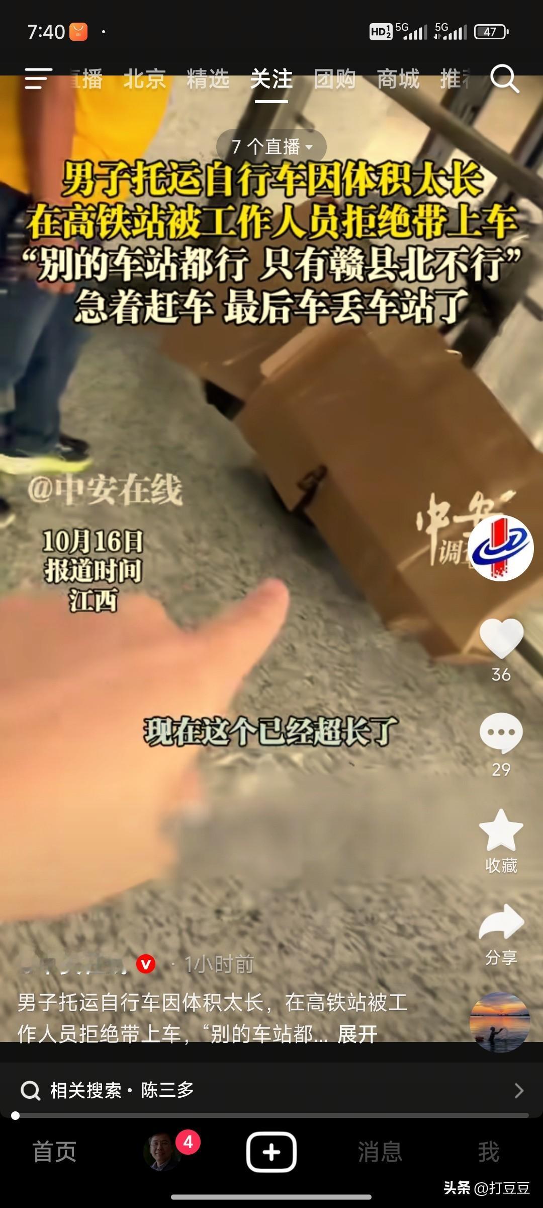 对此了一下,我感觉受到了不公平的待遇! 近日中安在线报道,一位旅客,将自行车用硬