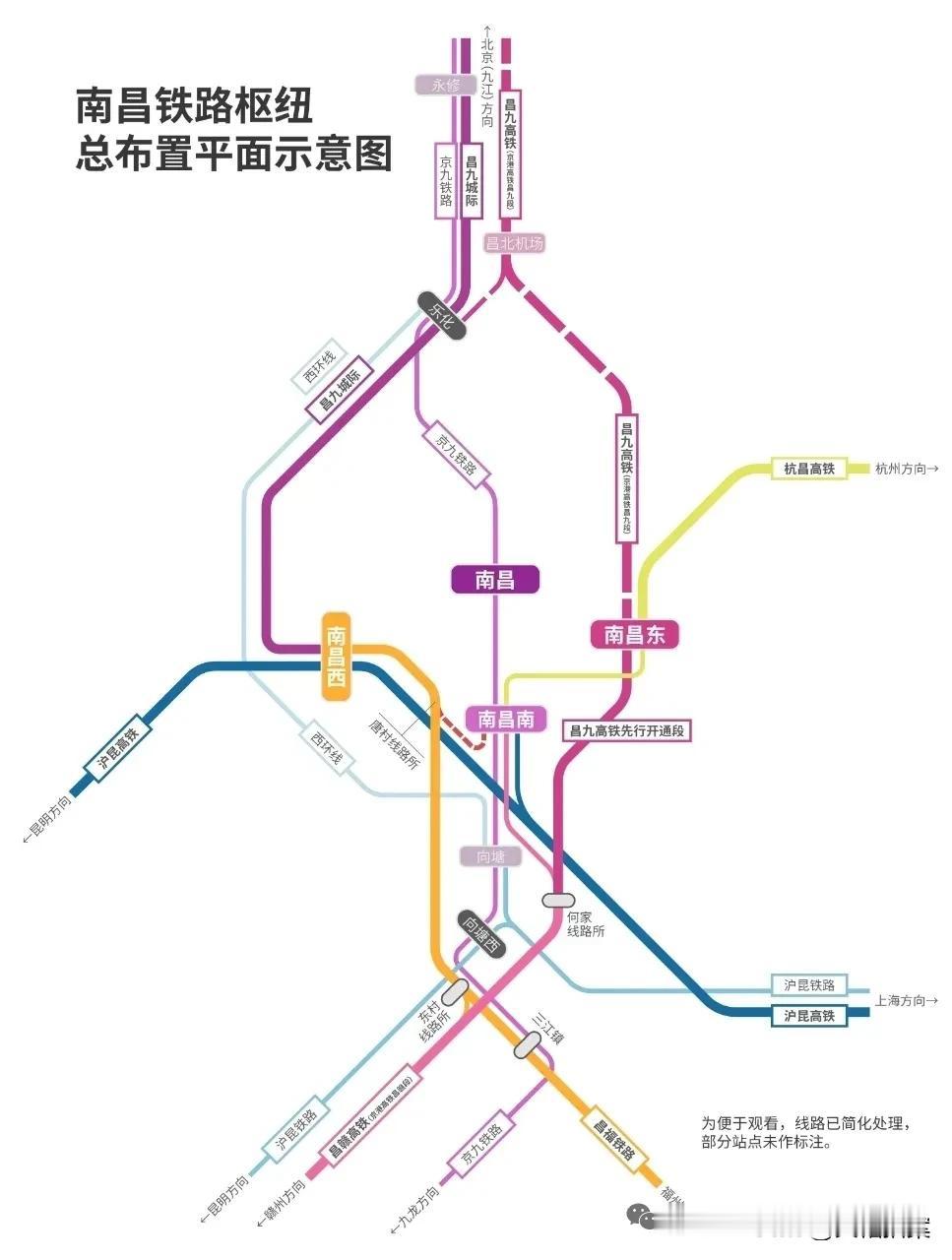 单就铁路枢纽效能而言,南昌高铁枢纽比武汉和长沙都要好。目前,南昌西站正在建设南唐联络线,为此专门让南昌西留出了107天的窗口期。待未来建成以后,可以实现南昌西与南昌其他三大枢纽的互联互通。 相比之下,武汉几大枢纽之间,即便武汉枢纽直通线建成,依然存在肠梗阻和瓶颈。比如西安方向列车,不能顺直接入京广高铁南下。 长沙高铁枢纽也存在肠梗阻,常益长高铁在长沙已经断头多年,至今无法接入京广高铁南下广深,要等2030年长赣高铁建成才能通过一条慢悠悠的联络线南下或东进。南昌高铁线 南昌车站 南昌发展规划 南昌路线