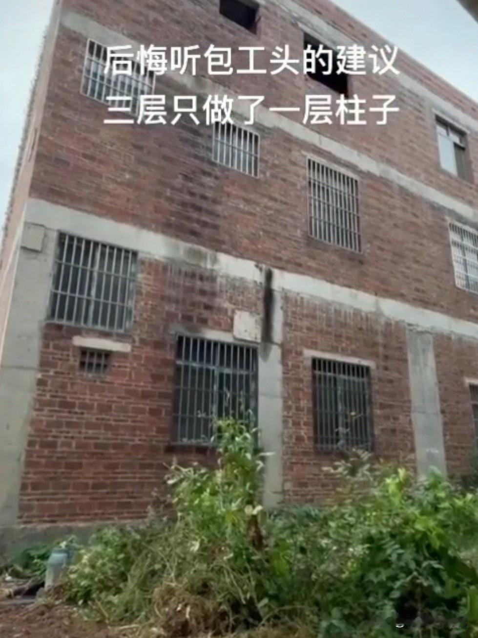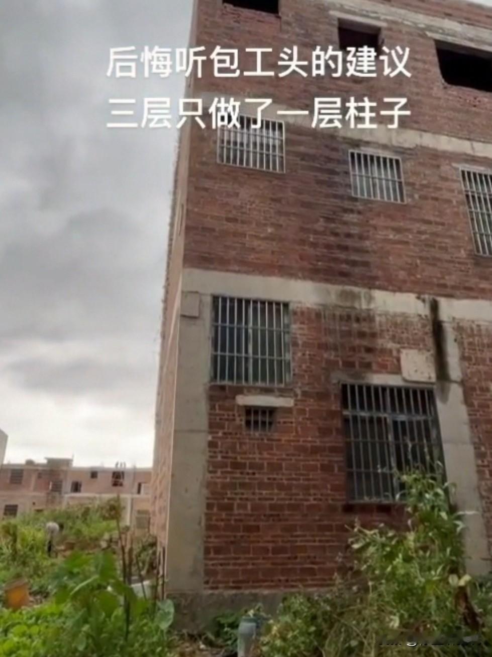 农村自建房惊现“奇葩操作”:三层楼居然只有底层做了柱子,这是把安全当儿戏? 房主哭诉“后悔听包工头的建议”,网友看完集体替他捏汗! 评论区直接炸锅: “后期墙体100%开裂,别问我怎么知道,我见的多了!” “福建人表示不敢!地震来了这房子扛得住?” “地基好也不能这么造啊!我家五层都没敢减柱子,钢筋都没少用!” 还有人吐槽“包工头贪快,房主图省钱,最后坑的是自己”! 建房不是过家家,安全底线不能丢!这种“省柱子”操作,是把全家安危当赌注?劝各位建房别听“野路子”,专业设计和安全规范才是王道!