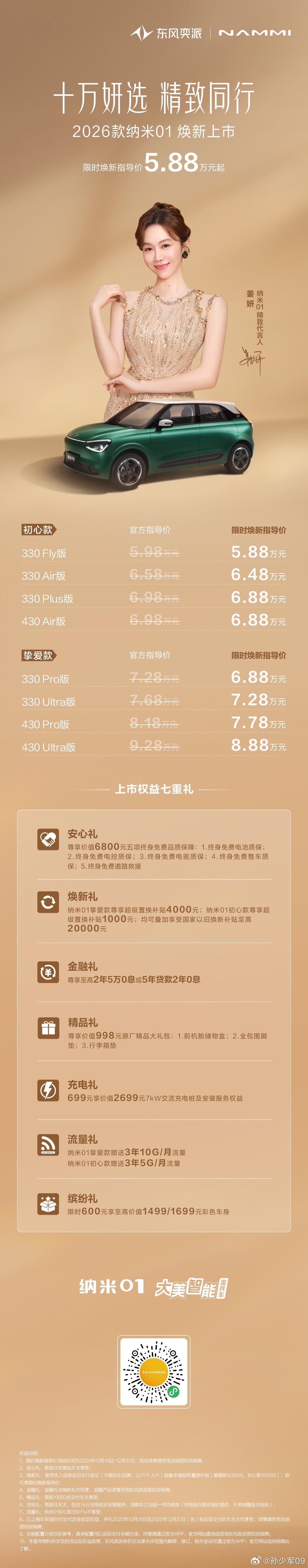 东风纳米01焕新款上市,限时起步价6.88万