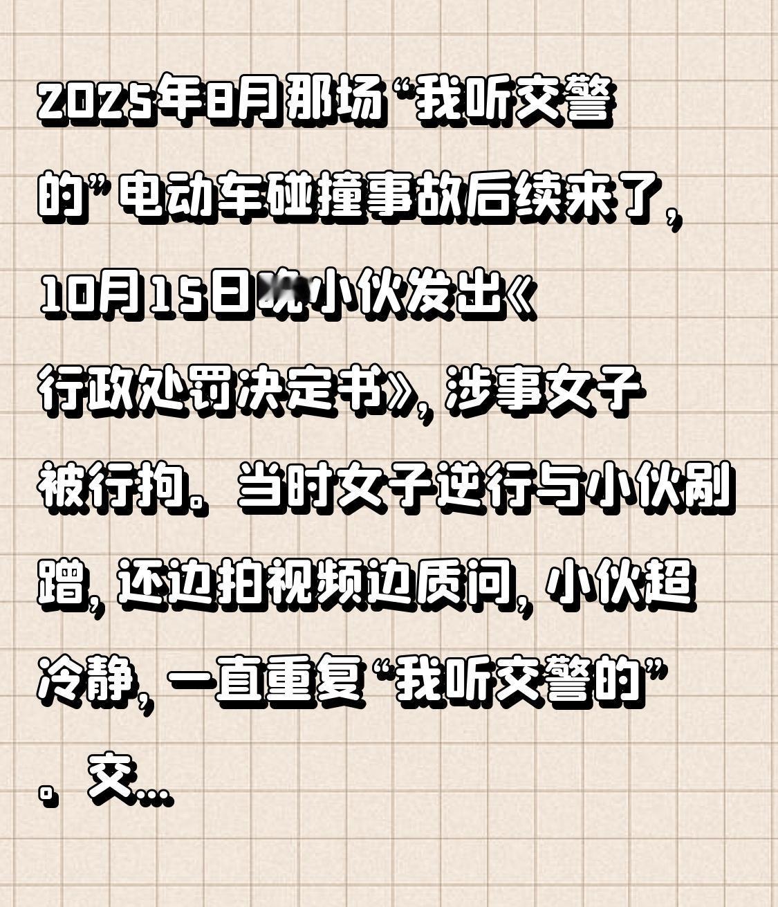 2025年8月那场“我听交警的”电动车碰撞事故后续来了,10月15日晚小伙发出《